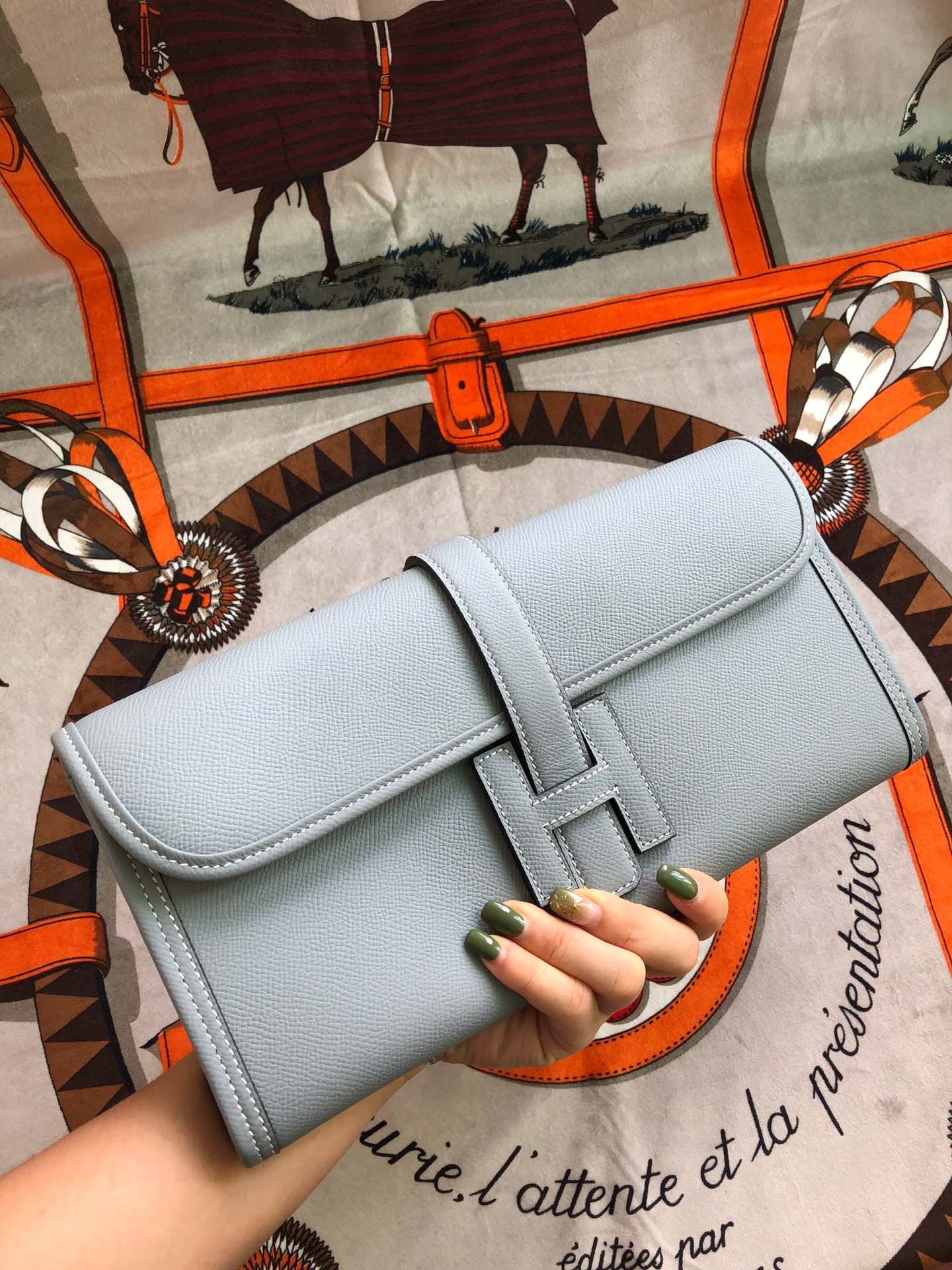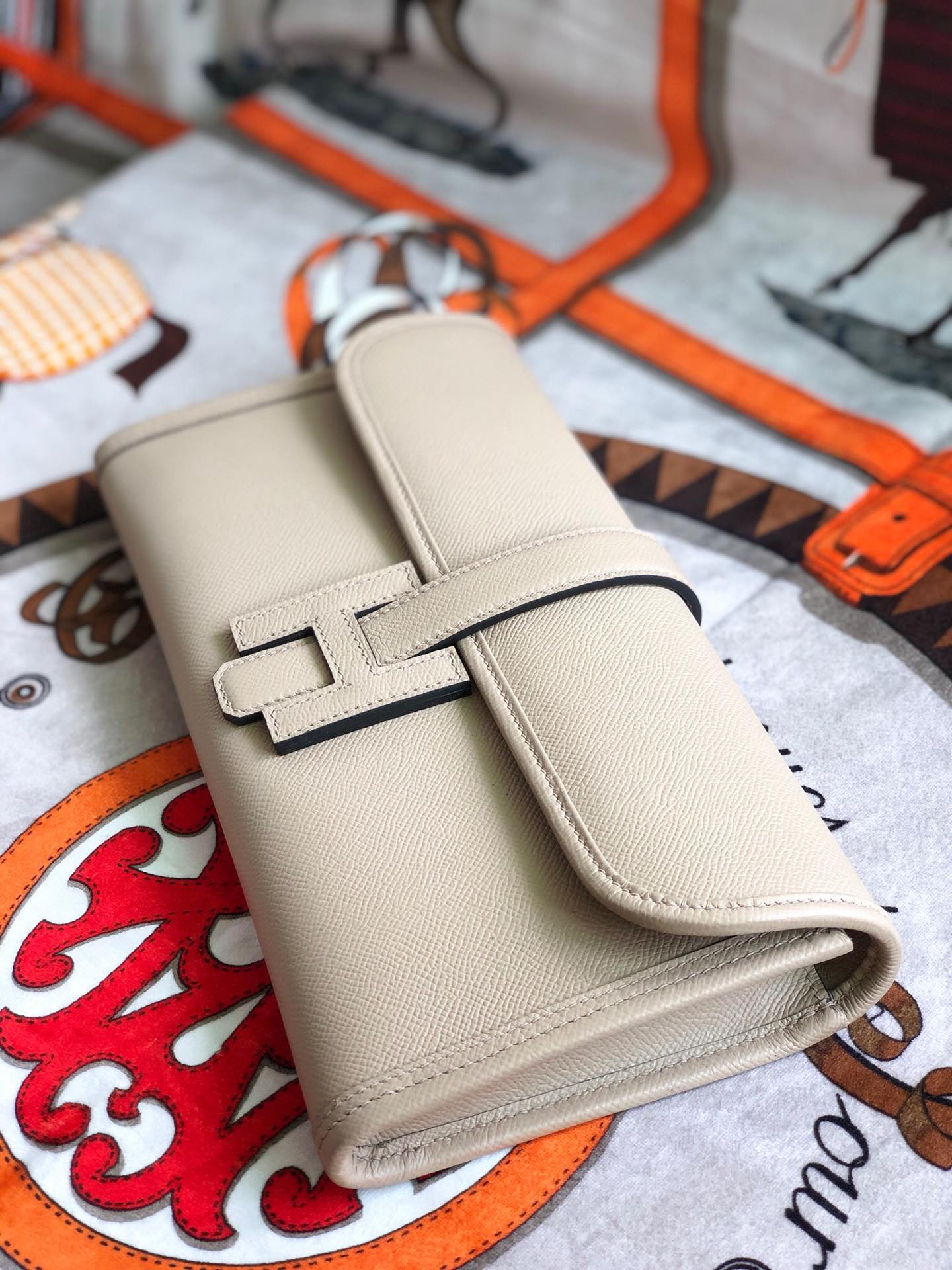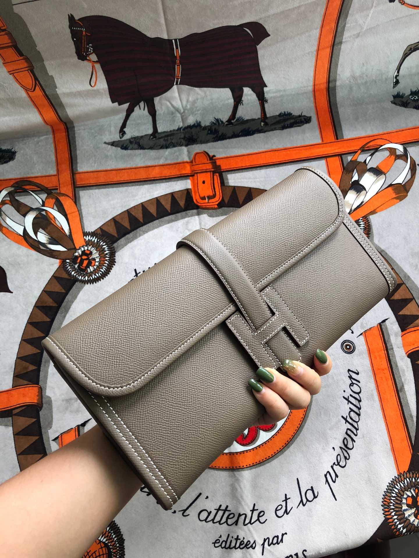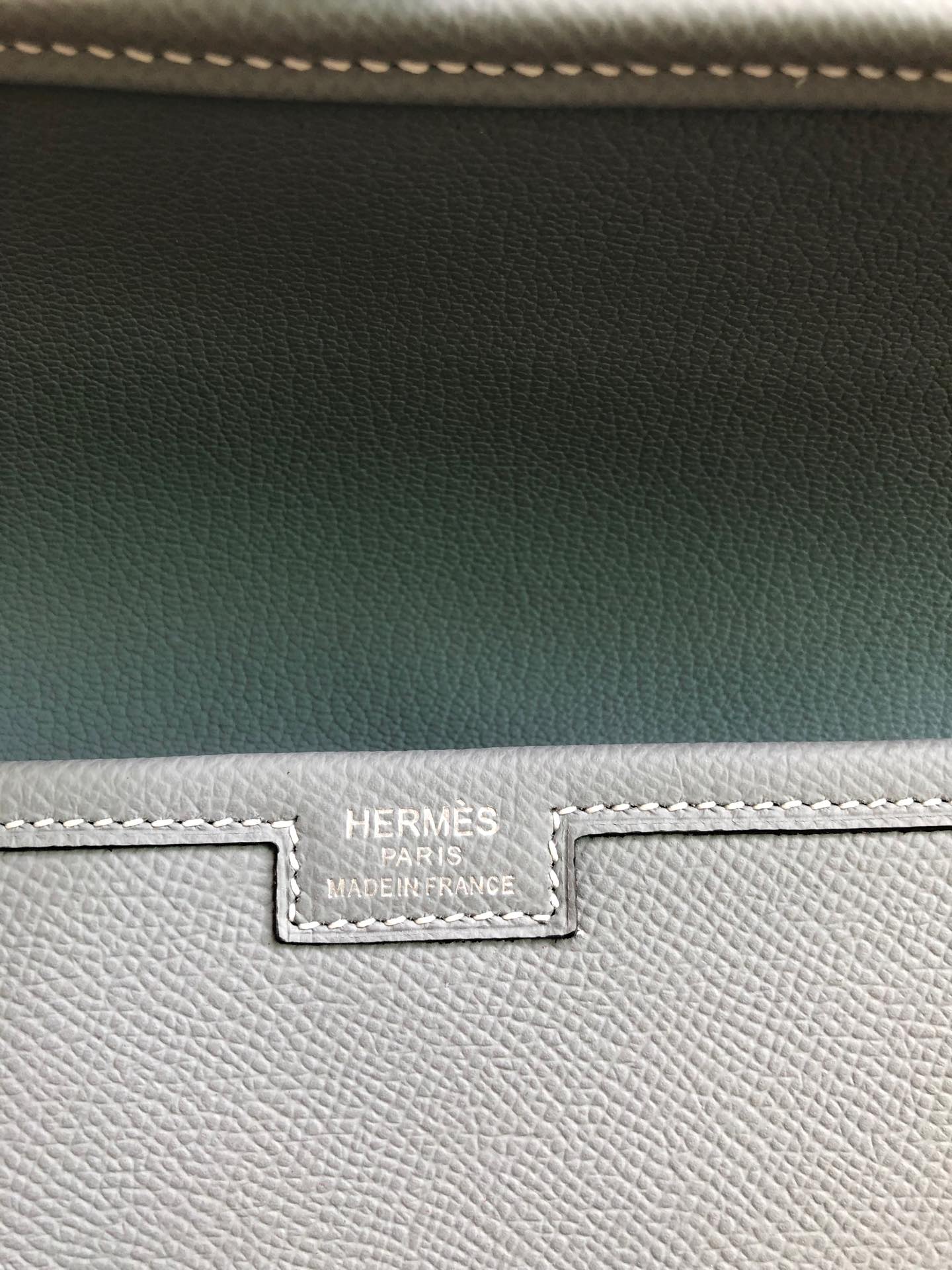 HM Kelly Cut 31 Fossil Gray Epsom Leather Silver Hardware 229053