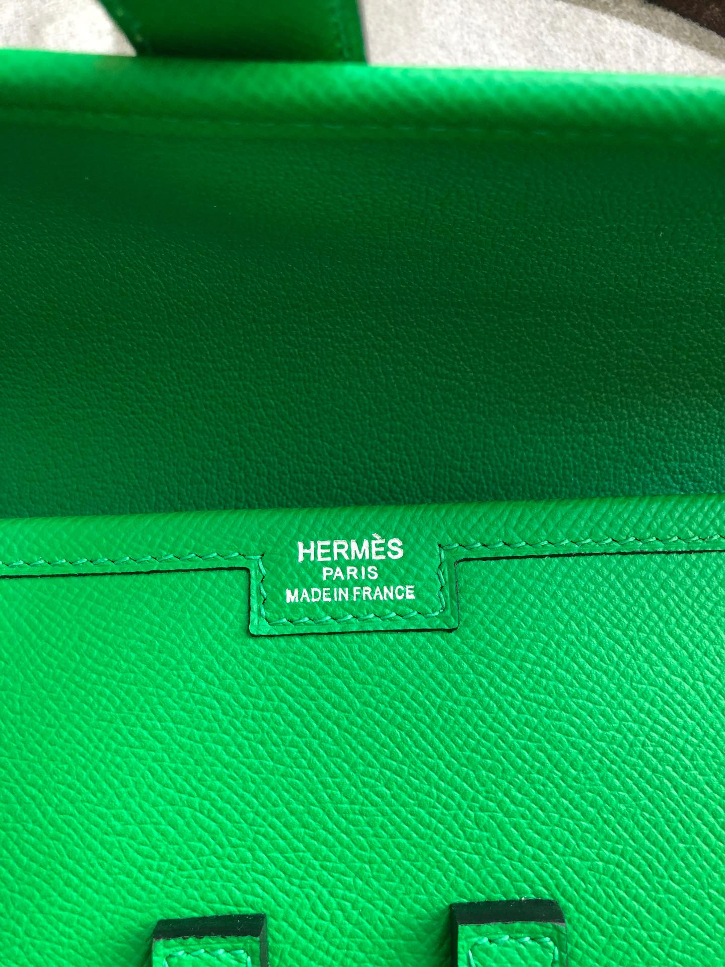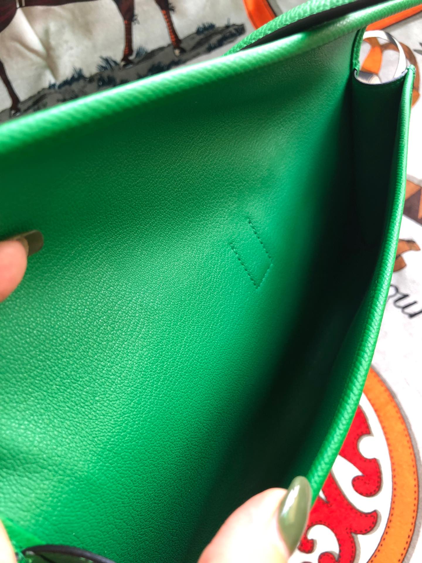 HM Kelly Cut 31 Kaitoke Green Epsom Leather Silver Hardware 229041