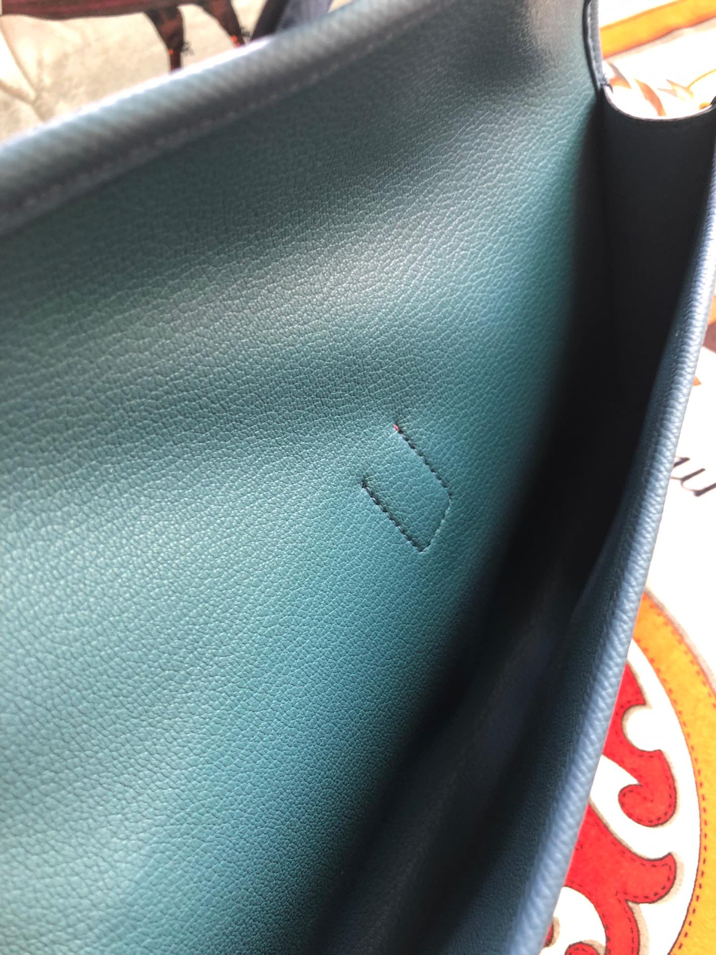 HM Kelly Cut 31 Teal Blue Epsom Leather Silver Hardware 229063