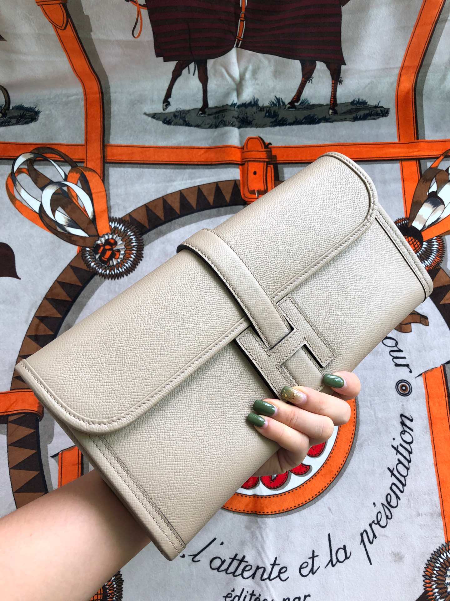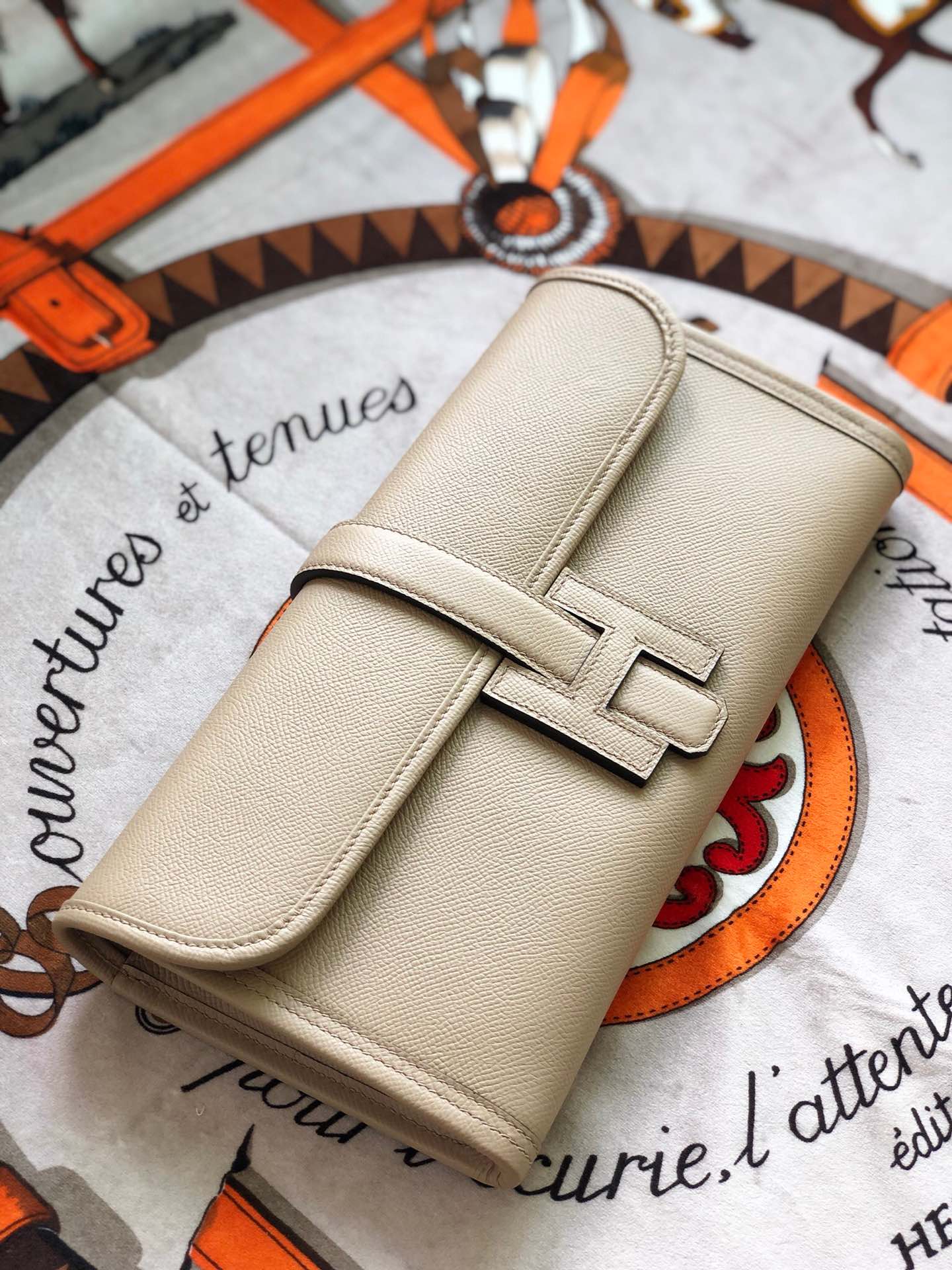 HM Kelly Cut 31 Fossil Gray Epsom Leather Gold Hardware 229052