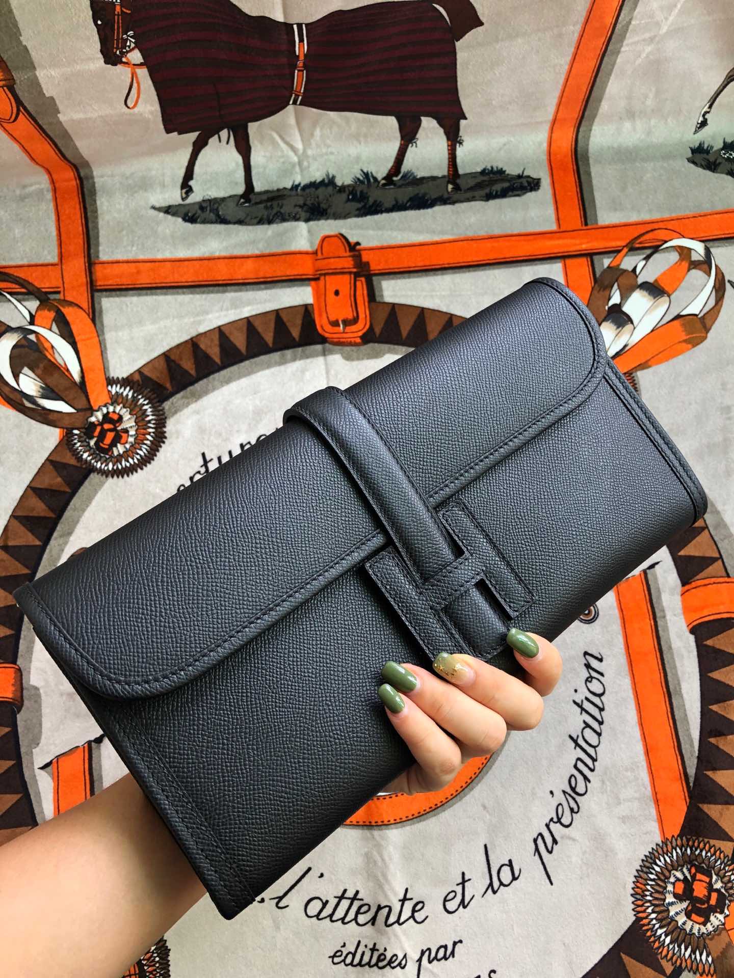 HM Kelly Cut 31 Black Epsom Leather Silver Hardware 229059