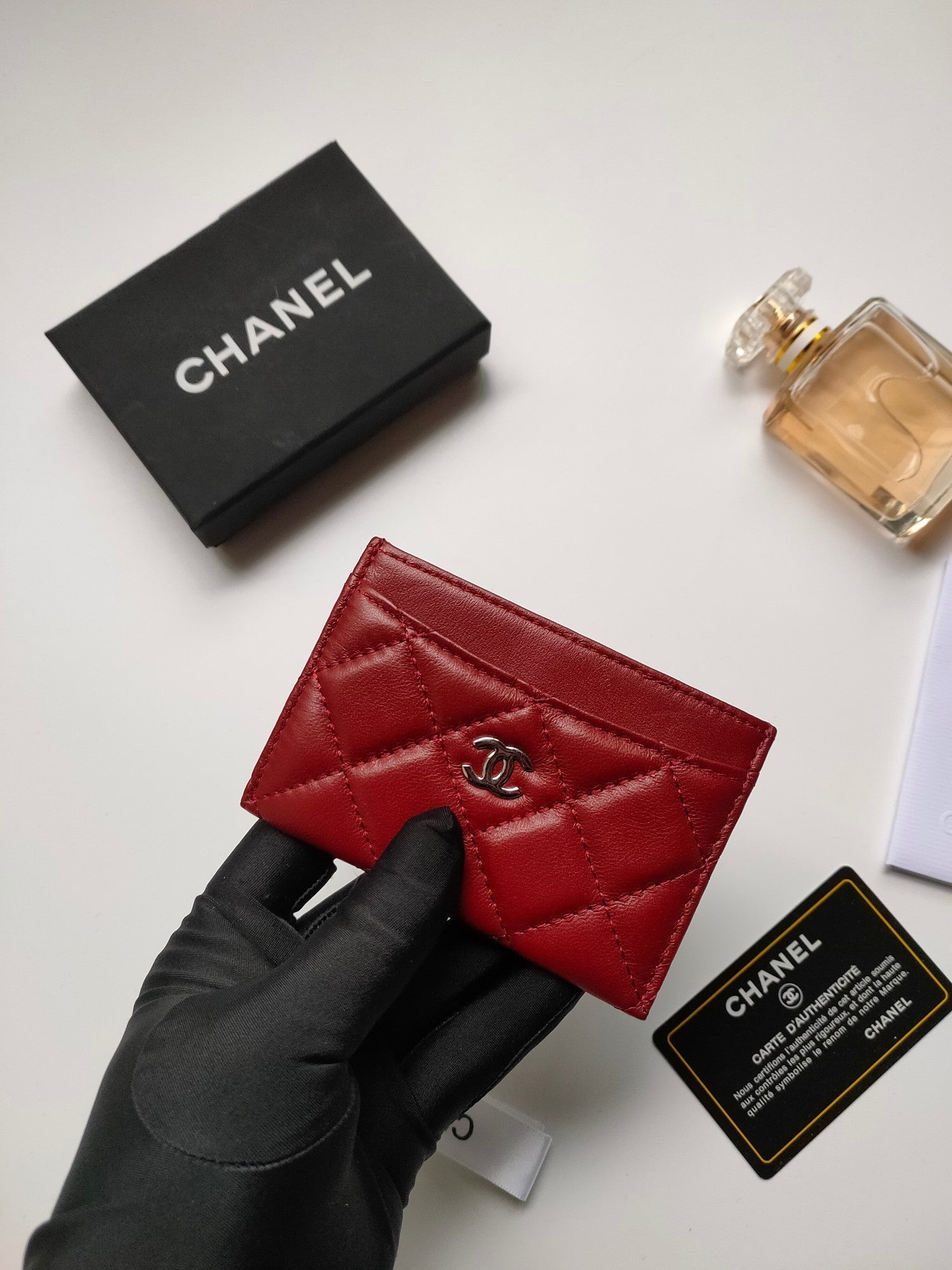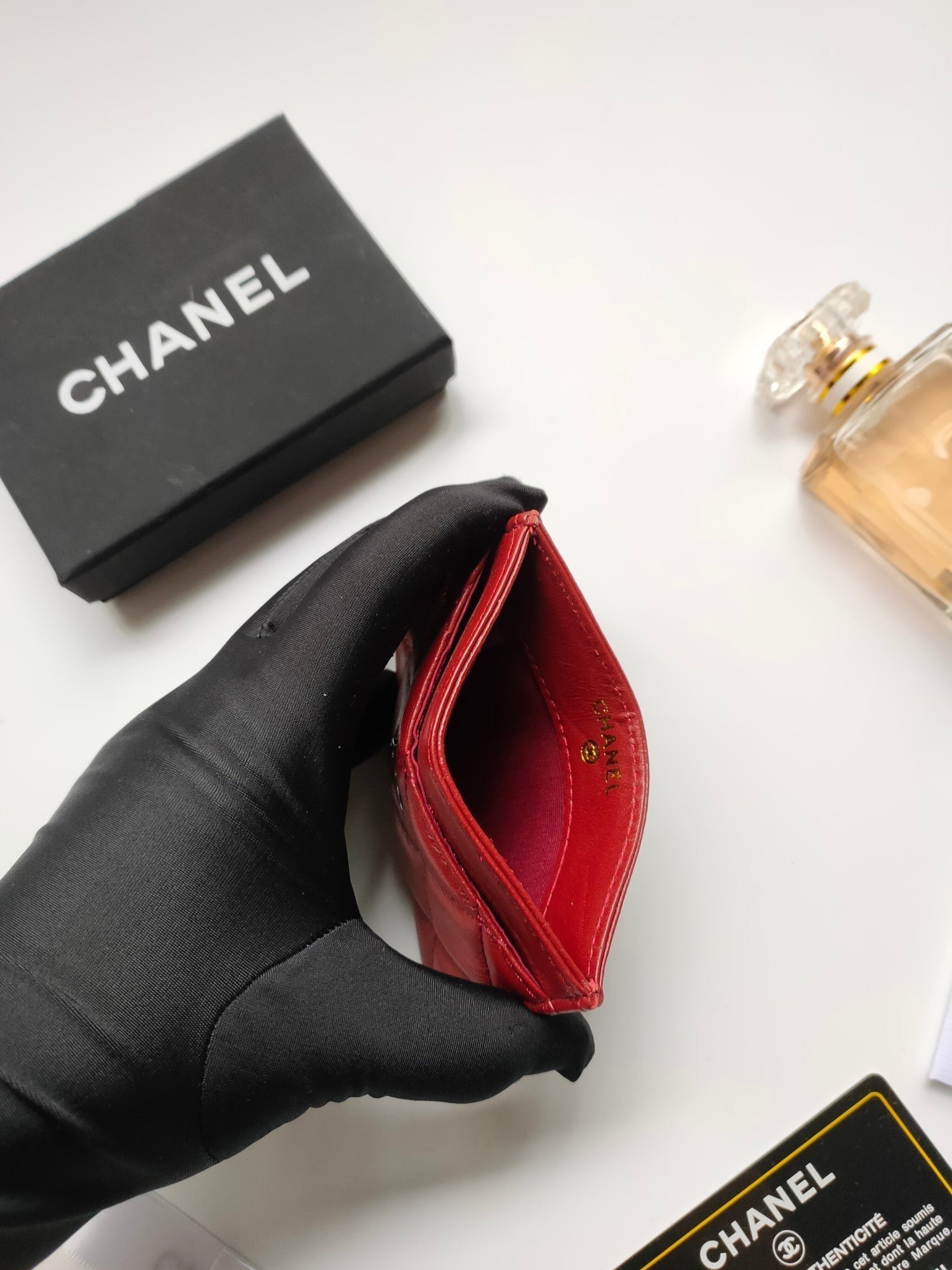 CC CARD HOLDER 11.2 RED GRAINED CALFSKIN GOLD ICON
