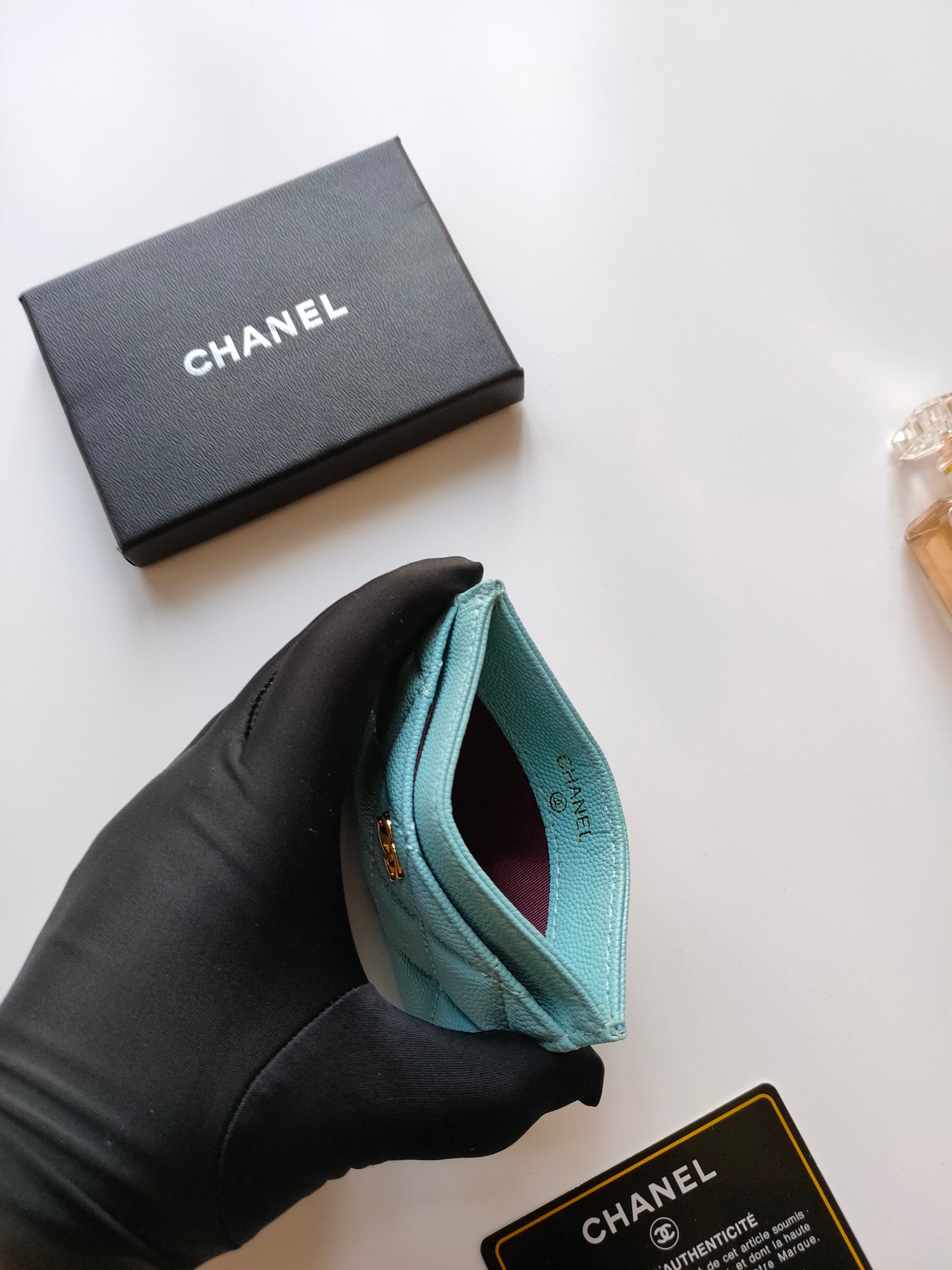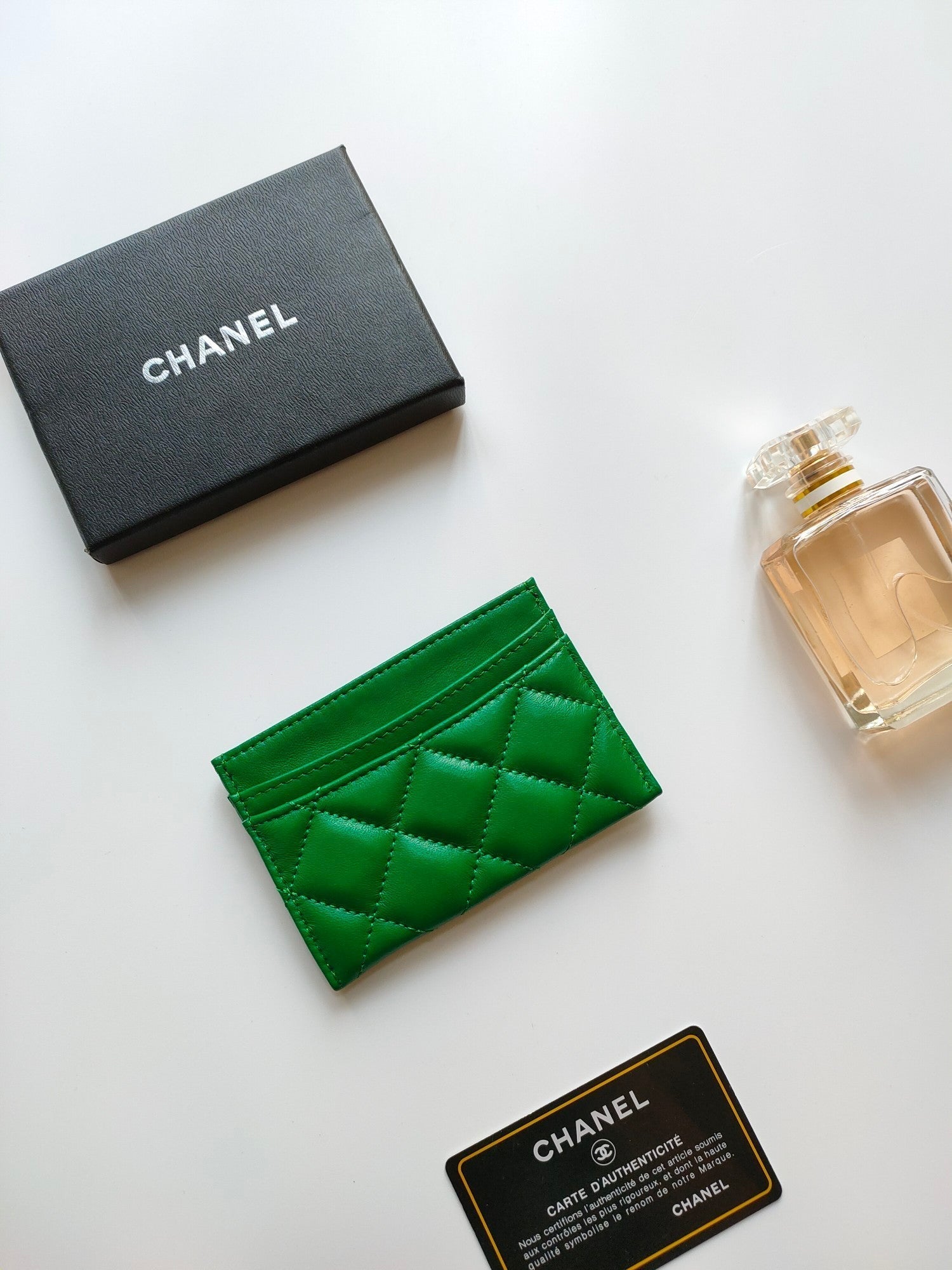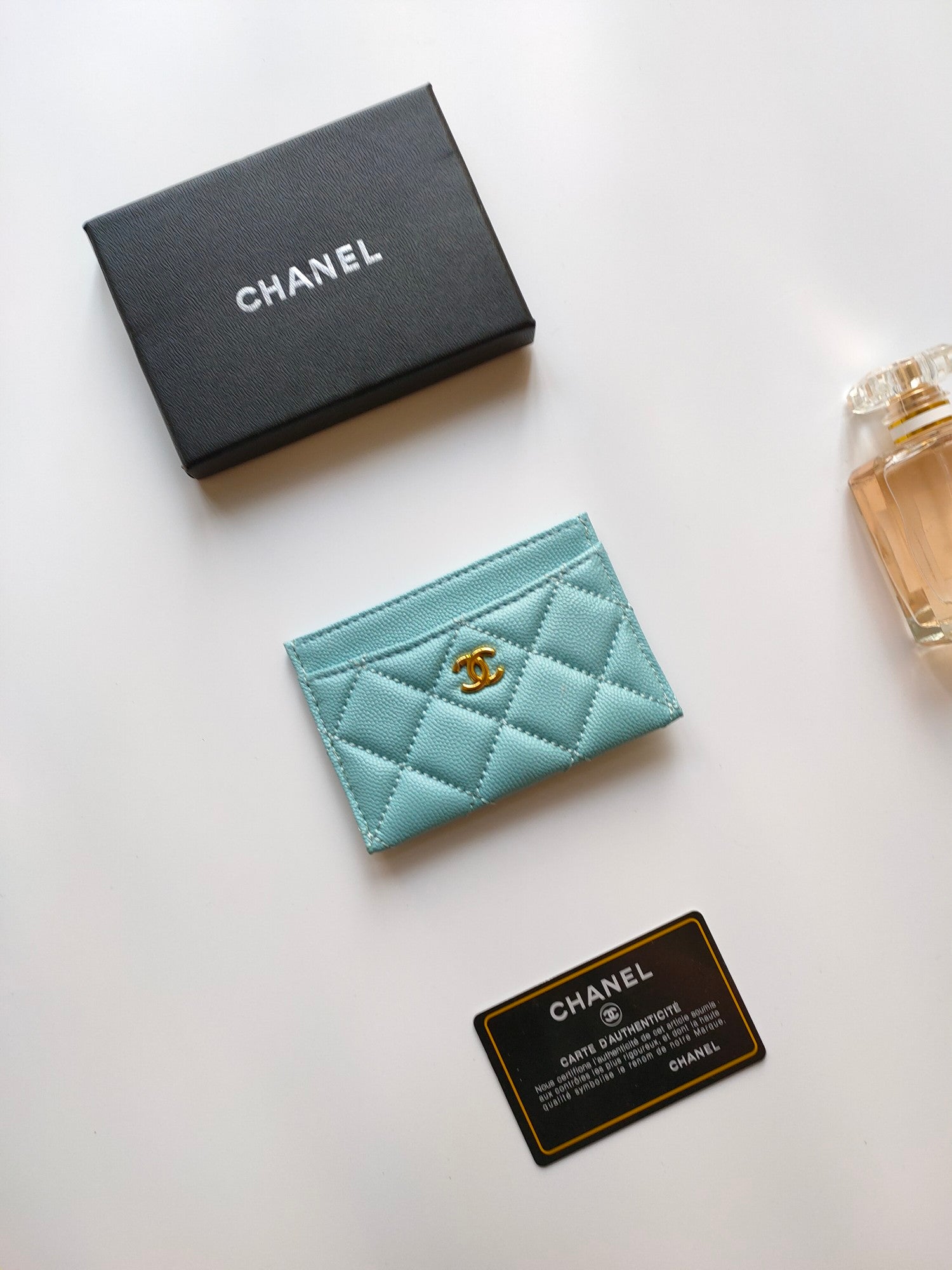 CC CARD HOLDER 11.2 LIGHT GRREN GRAINED CALFSKIN GOLD ICON