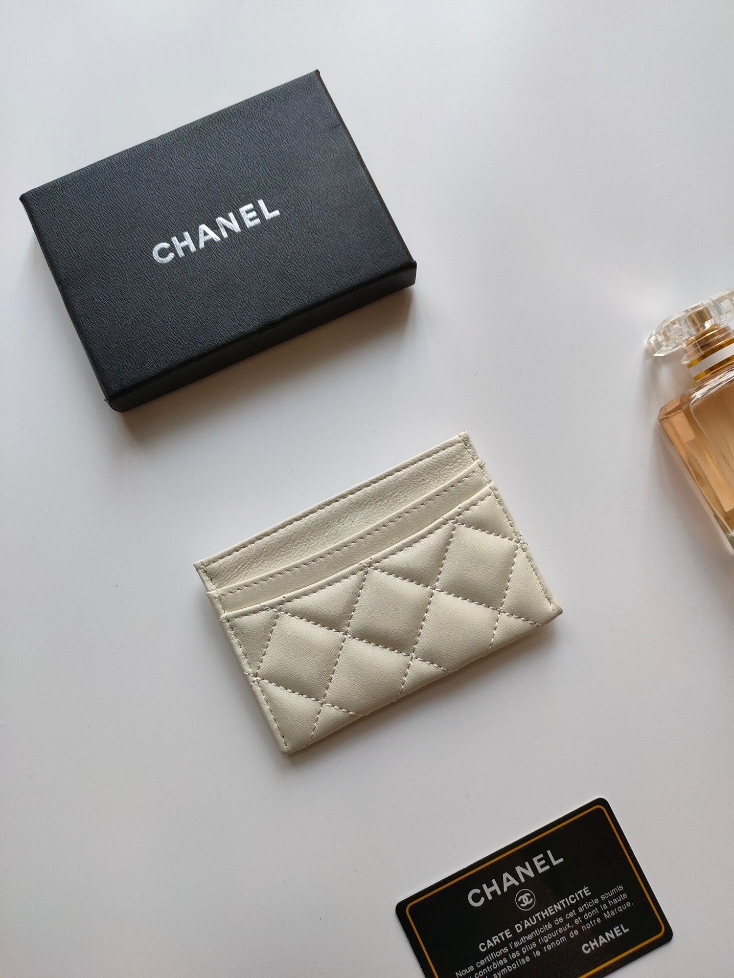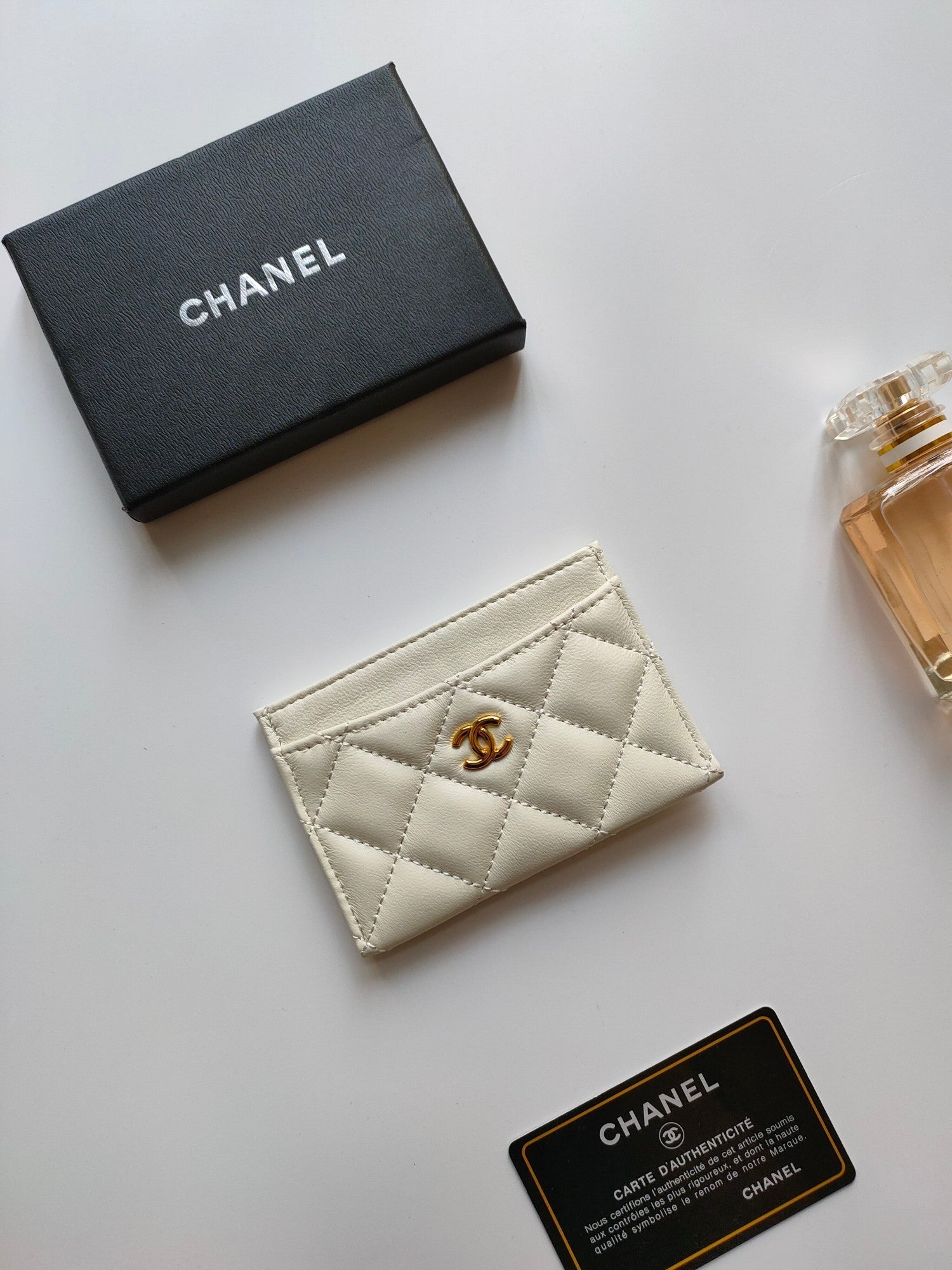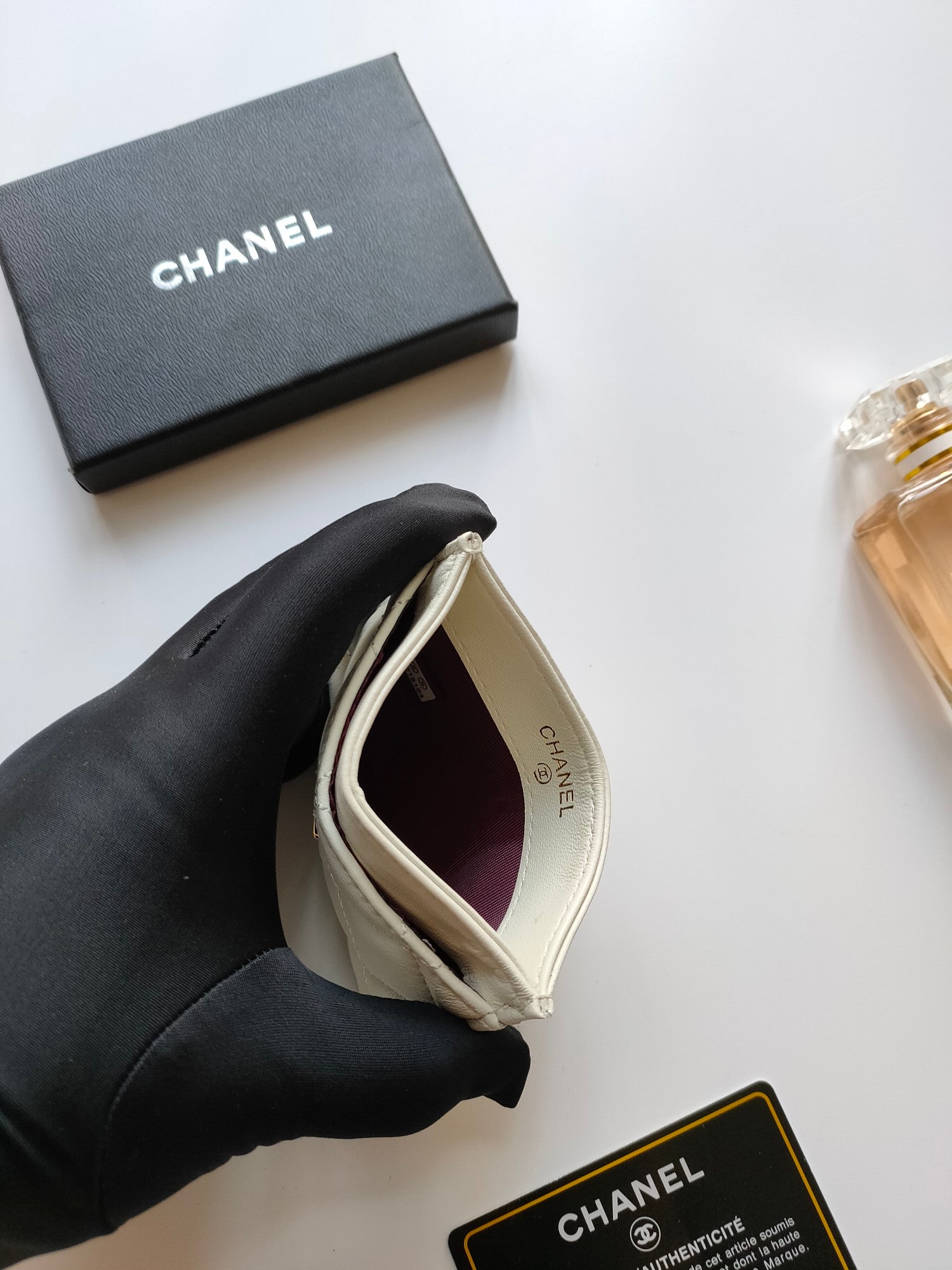 CC CARD HOLDER 11.2 WHITE CALFSKIN GOLD ICON