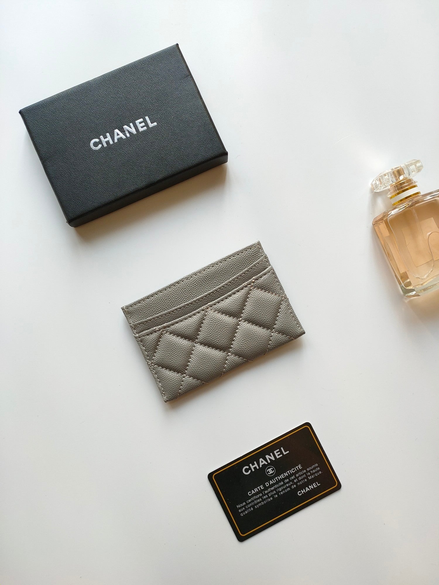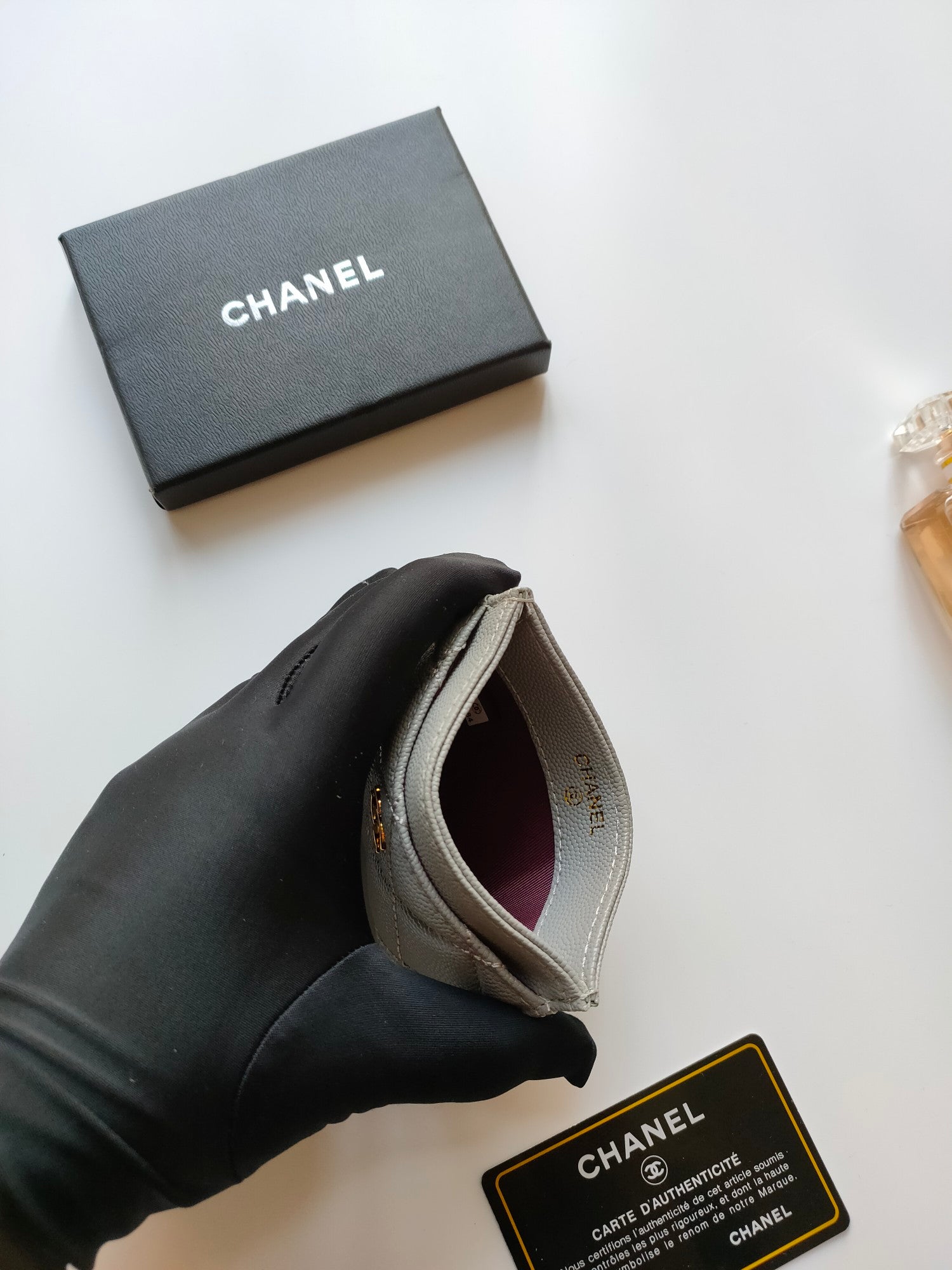 CC CARD HOLDER 11.2 GRAY CALFSKIN GOLD ICON