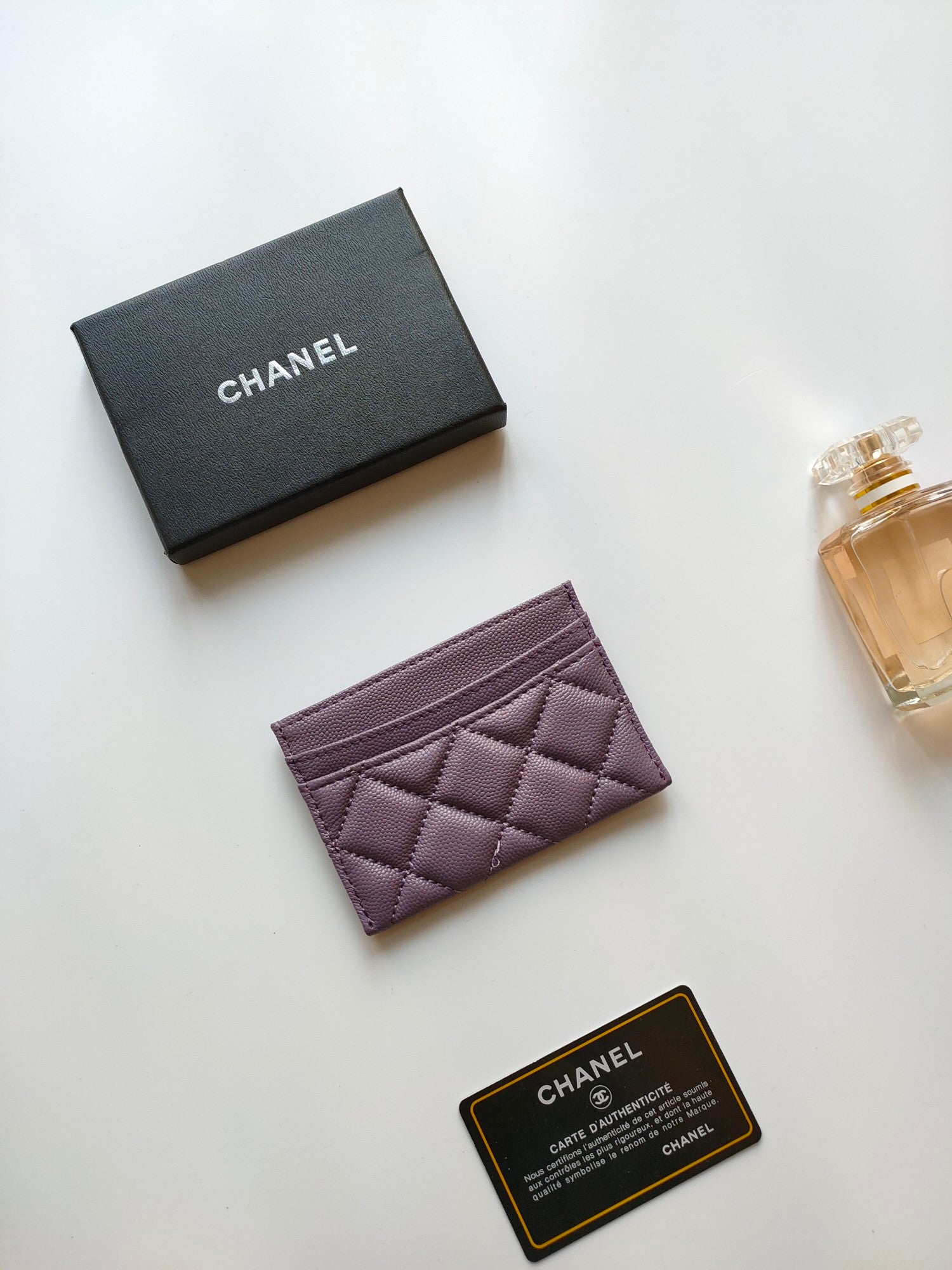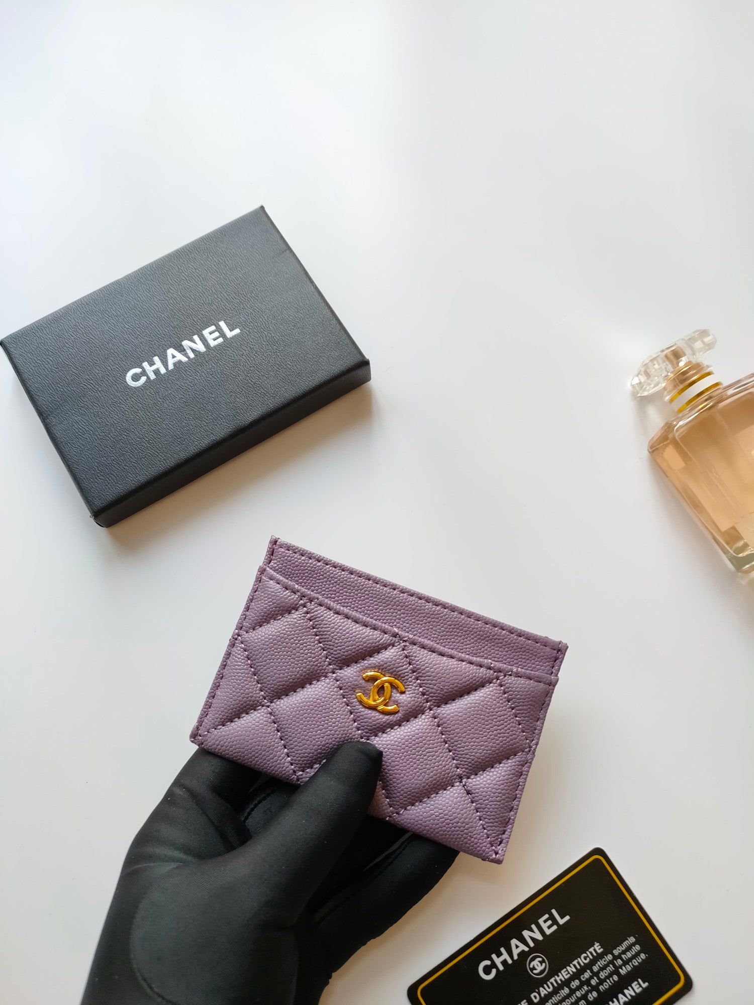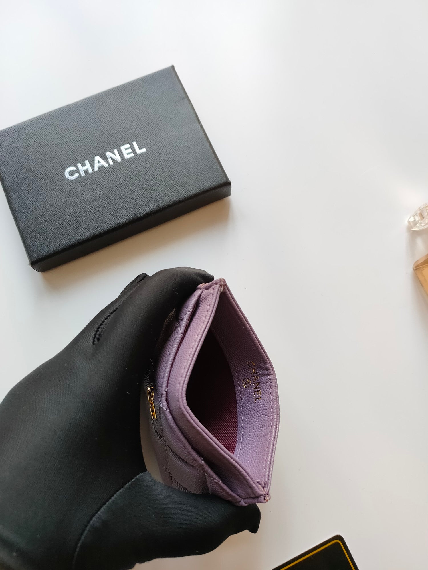 CC ZIPPED CAVIAR PURSE 11 PURPLE CALFSKIN GOLD ICON