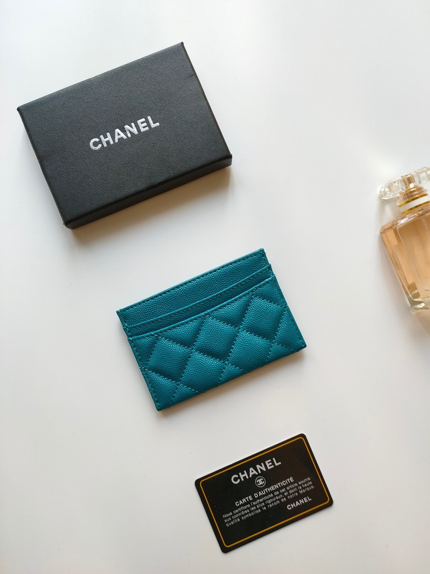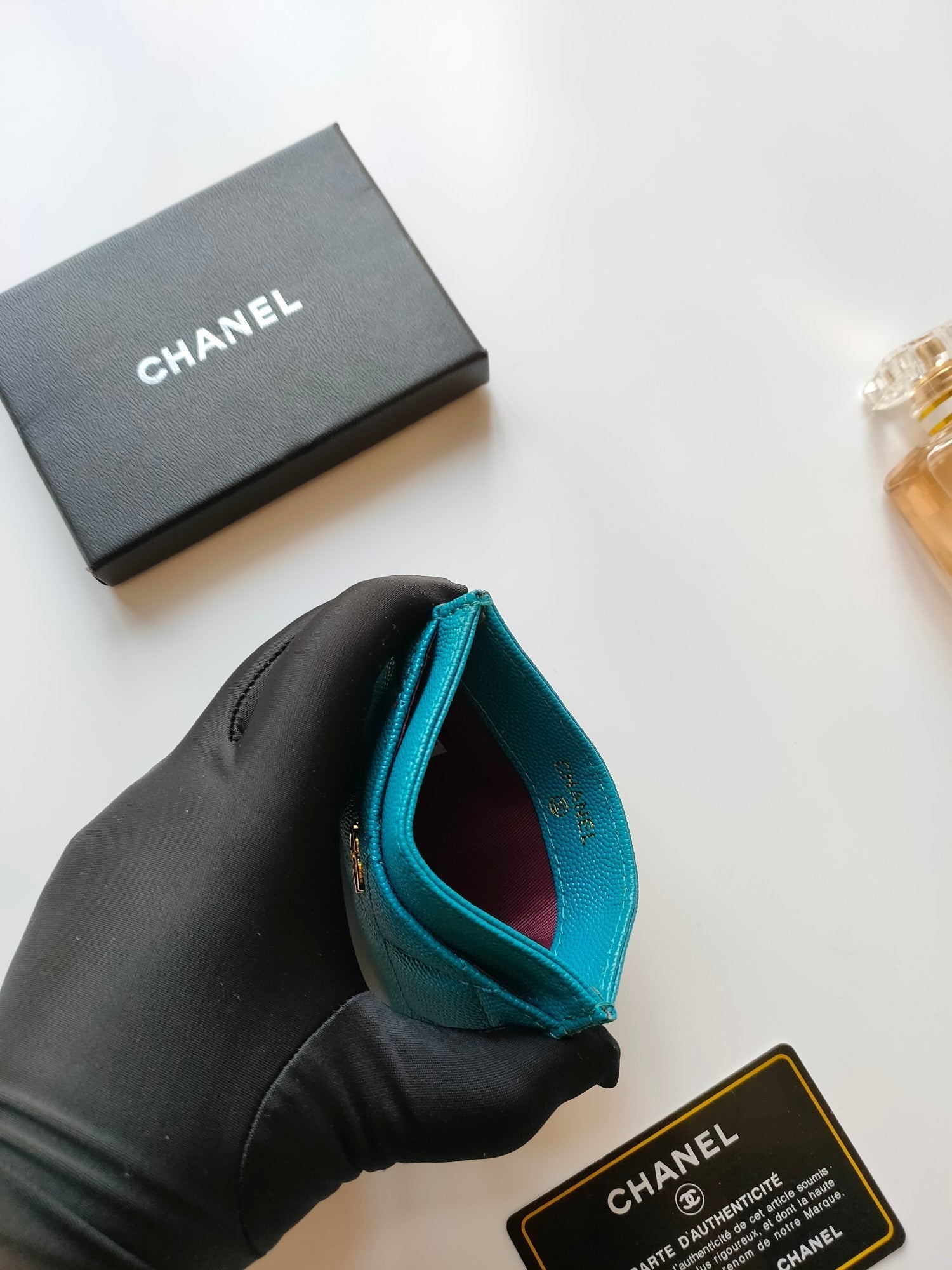 CC ZIPPED CAVIAR PURSE 11 TEAL CALFSKIN GOLD ICON