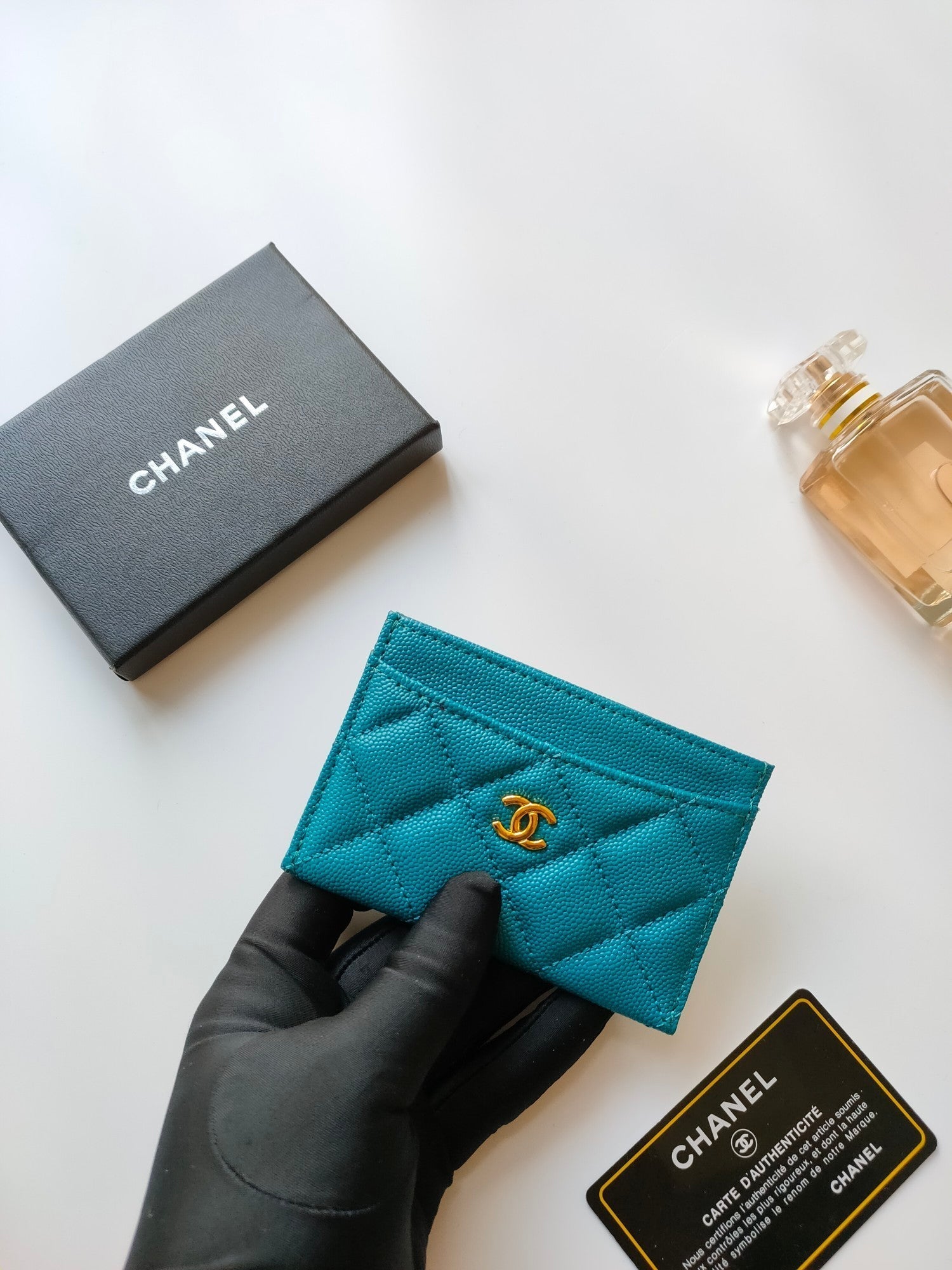 CC ZIPPED CAVIAR PURSE 11 TURQUOISE CALFSKIN GOLD ICON