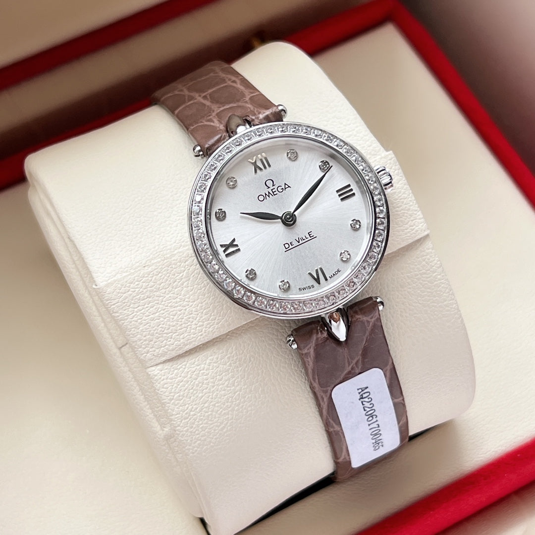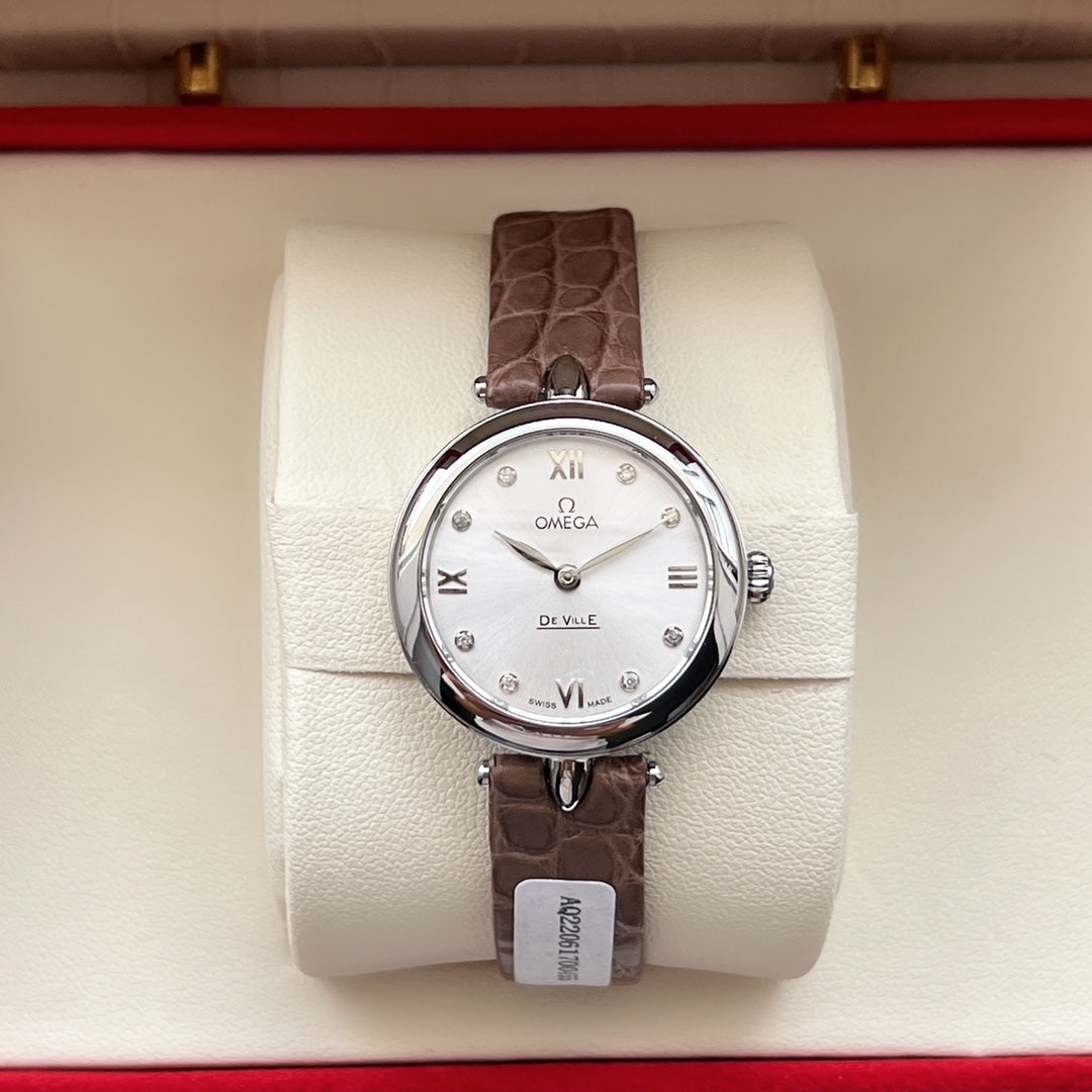 Omega De Ville 27.4mm Silver Brown Leather