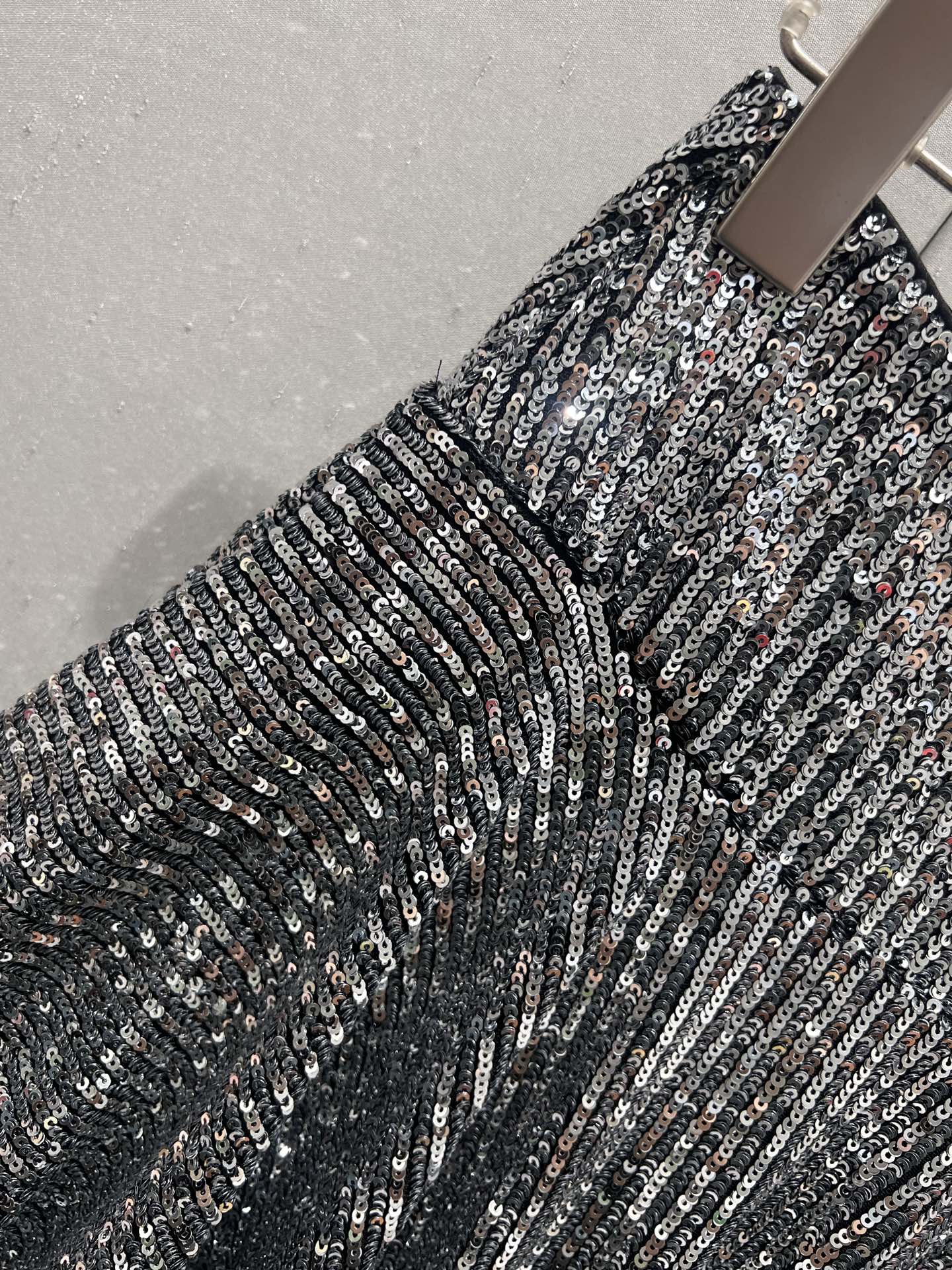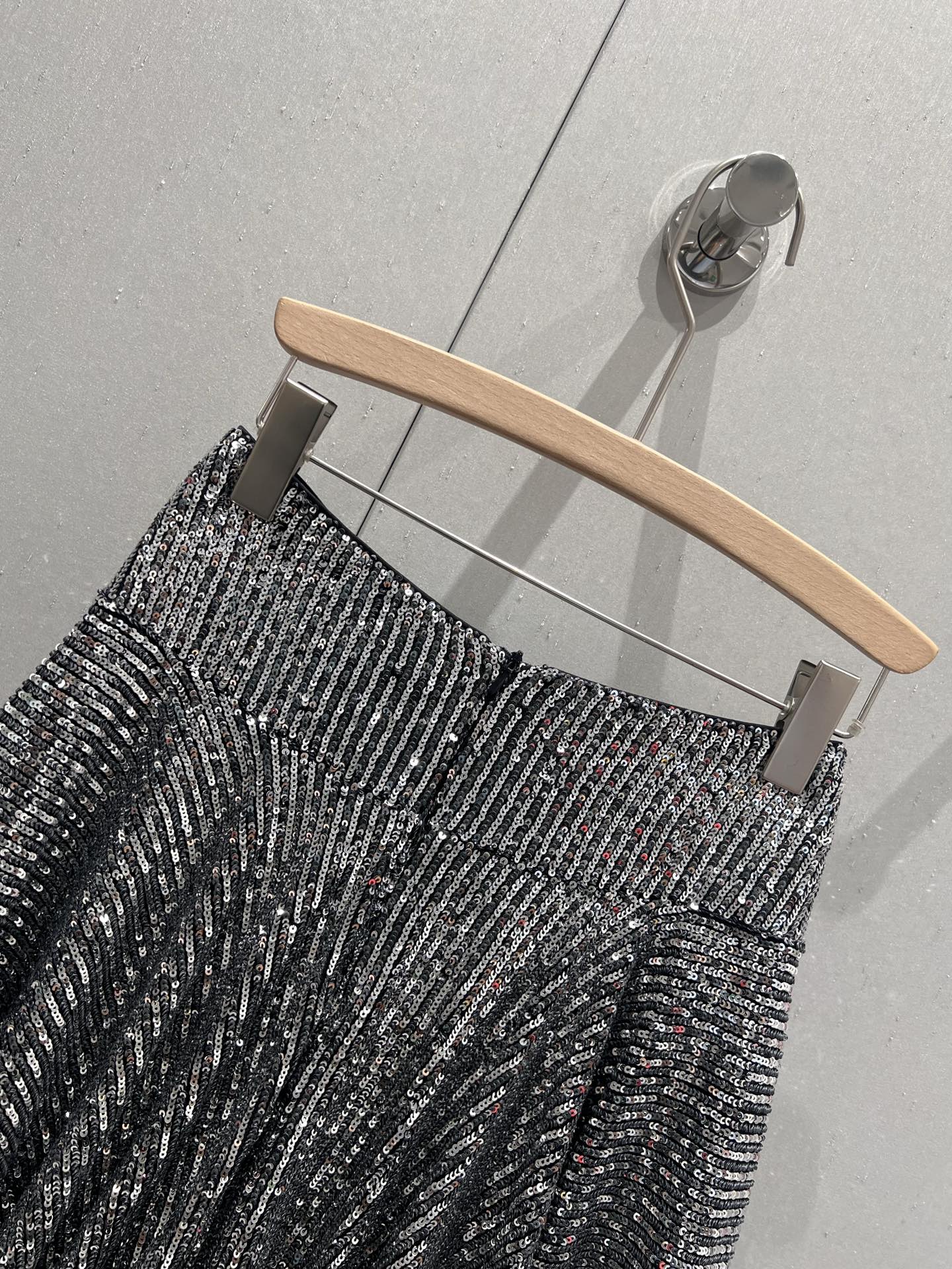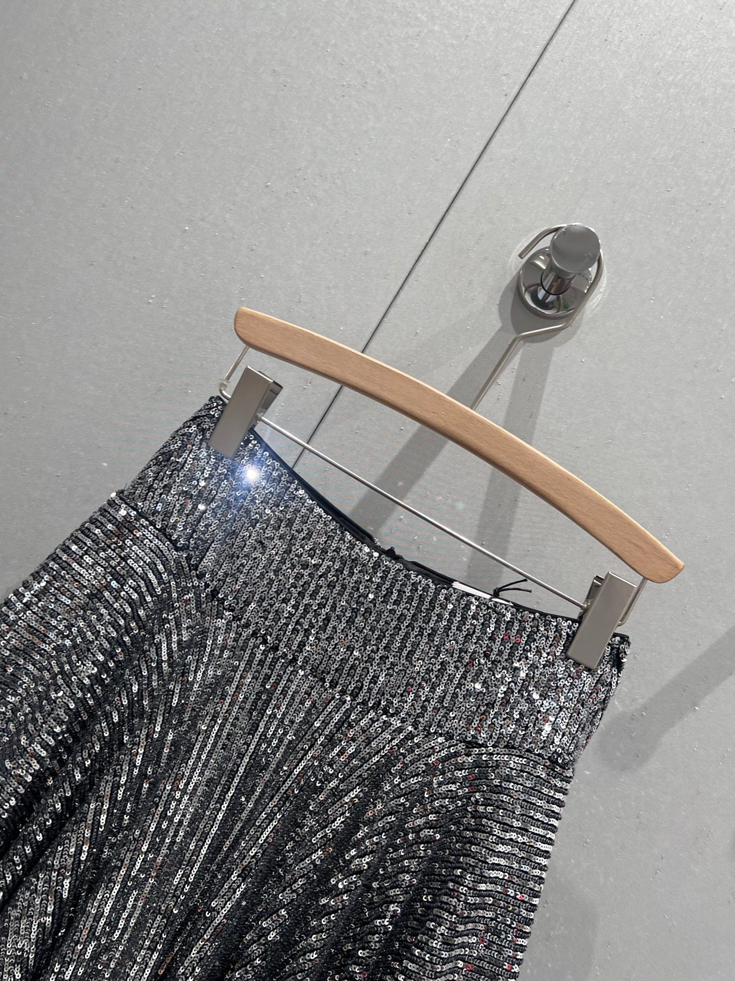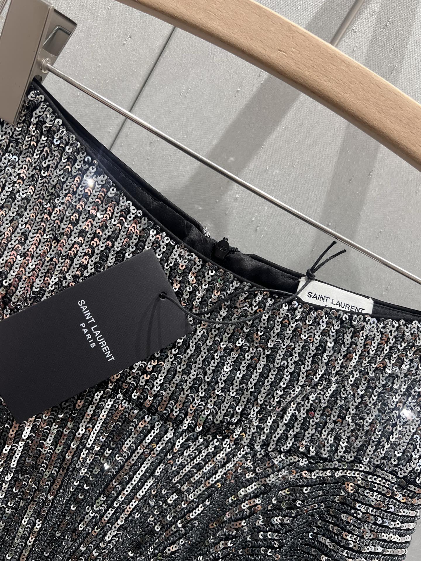 YSL 2025 Sequined Skirt Silver Polyester 212667