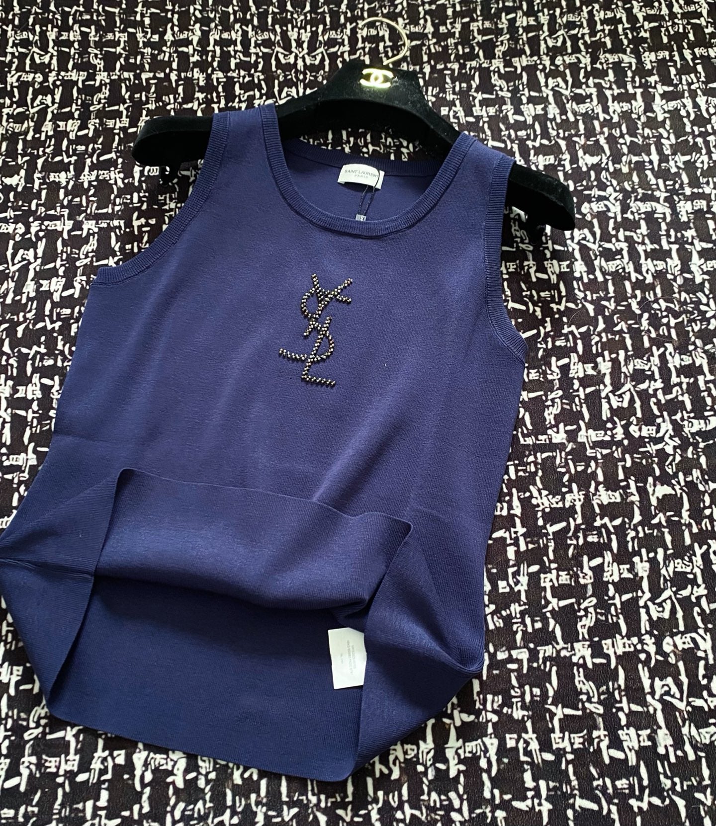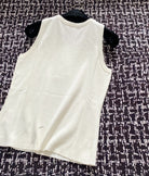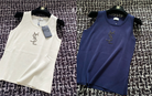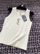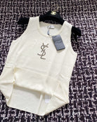 YSL 25 Knitted Logo Vest Blue and White Tencel Wool Linen