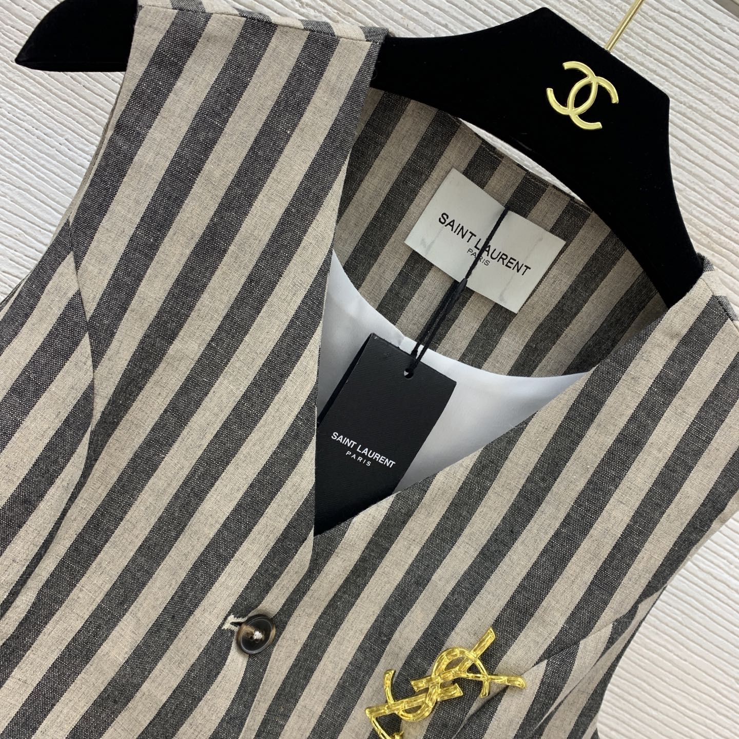 YSL Striped Two-piece Suit Beige mix Grey Linen