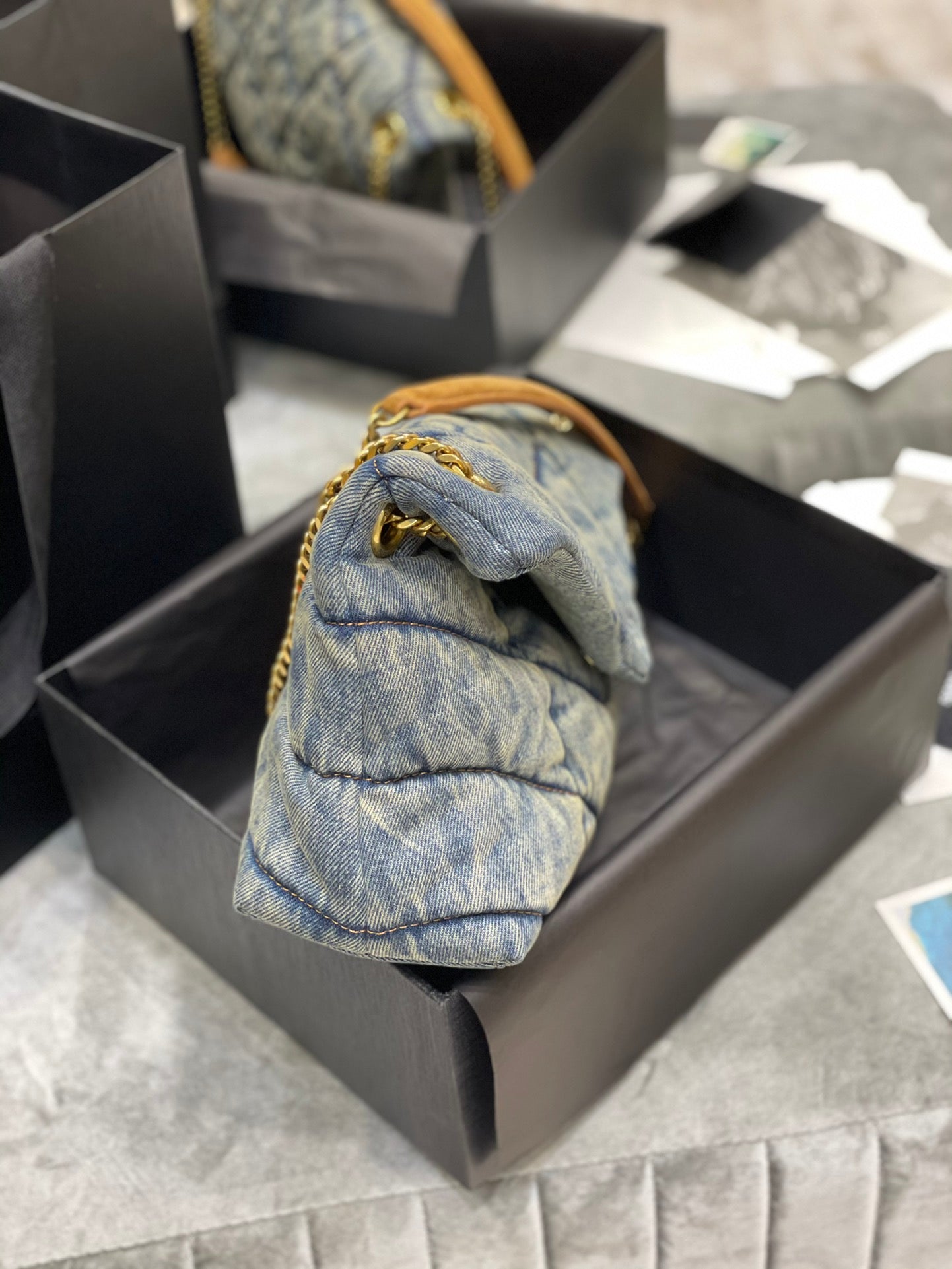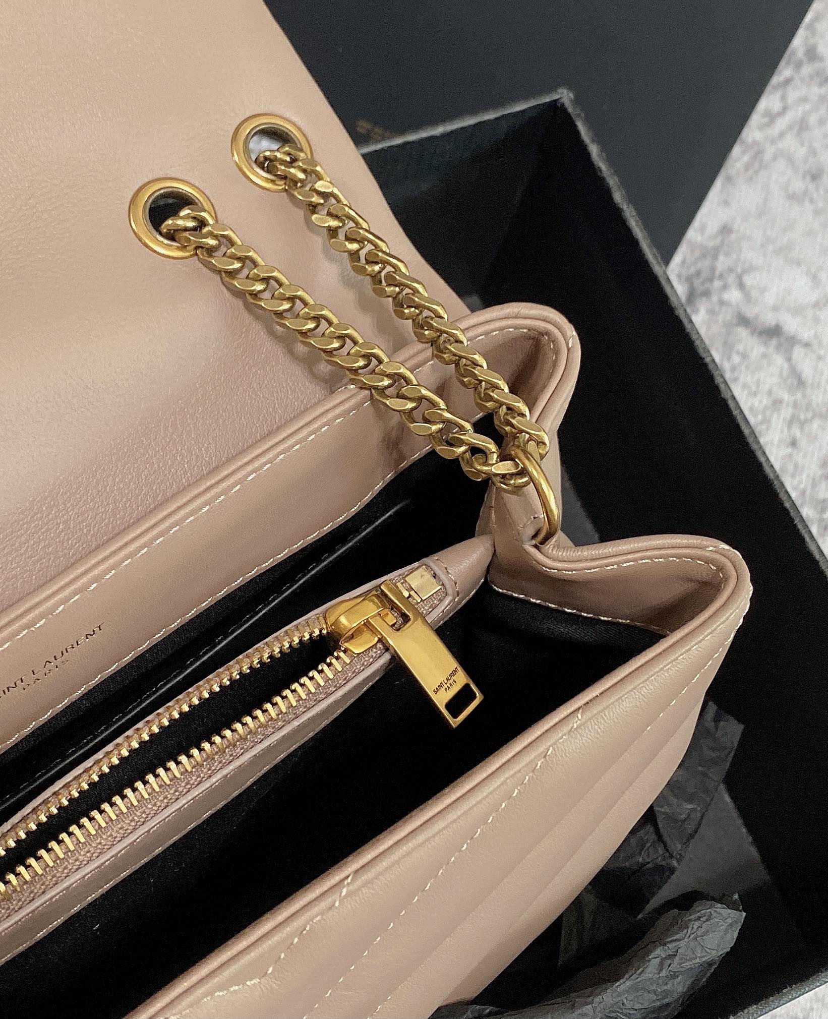 LOULOU MEDIUM 32 BROWN QUILTED LEATHER GOLD HARDWARE