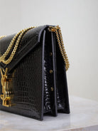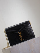 CASSANDRA CHAIN BAG 22 IN BLACK CROCODILE PATTERN CALFSKIN GOLD HARDWARE