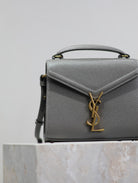 CASSANDRA MINI TOP HANDLE BAG 20 IN GRAY CALFSKIN GOLD HARDWARE