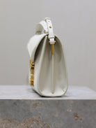 CASSANDRA MINI TOP HANDLE BAG 20 IN WHITE CANVAS AND LEATHER TRIM