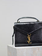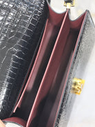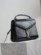 CASSANDRA TOP HANDLE BAG 24 IN BLACK CROCODILE-EMBOSSED GLOSSY CALFSKIN