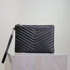 CLUTCH 24 IN BLACK QUILTED CALFSKIN SILVER BUCKLE
