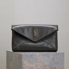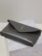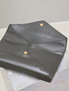 ENVELOPE CLUTCH 29 IN KOMBU GREEN LAMBSKIN COPPER LOGO