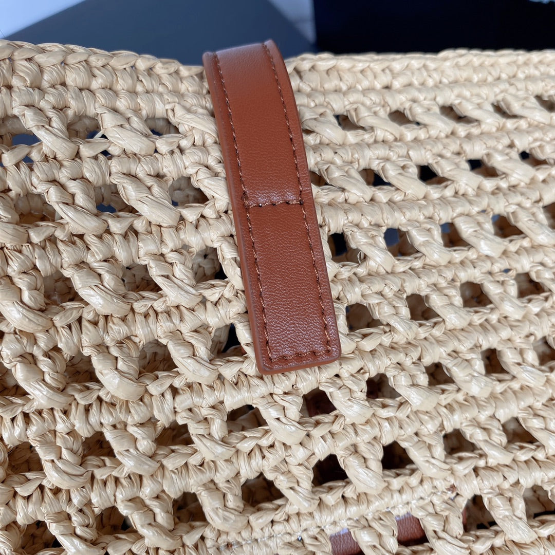 - Material: calfskin, raffia