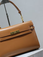 MANHATTAN HANDBAG 32 IN CINNAMON BROWN CALFSKIN GOLD HARDWARE