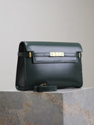 MANHATTAN MEDIUM 29 IN SACRAMENTO GREEN SMOOTH CALFSKIN GOLD BUCKLE