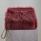 NIKI LARGE 32 IN CURRANT RED RABBIT FUR GOLD HARDWARE