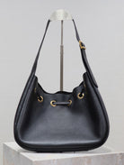 PARIS VII SMALL HOBO 30 IN BLACK GRAINED LEATHER GOLD HARDWARE