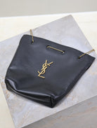 POCHON BUCKET BAG 20 IN BLACK LAMBSKIN GOLD HARDWARE