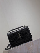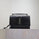 SUNSET SMALL BAG 19 IN BLACK CROCODILE-EMBOSSED CALFSKIN SILVER HARDWARE