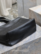 TOTE BAG 50 IN BLACK CALFSKIN WITH EMBOSSED LOGO