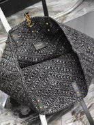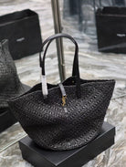 YSL MEDIUM 44CM PANIER BLACK RAFFIA TOTE BAG