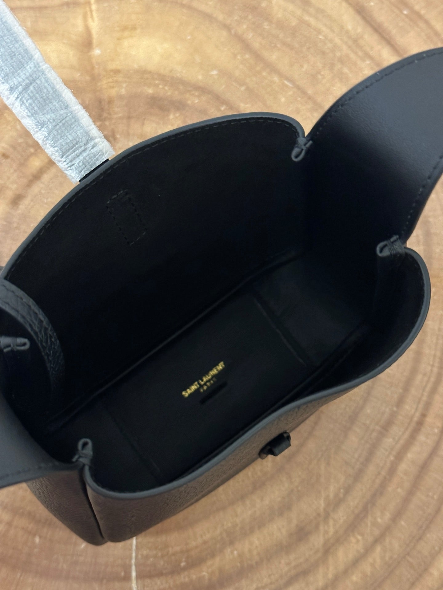 YSL PANIER BAG 55CM BLACK CROCHET RAFFIA TAN CALFSKIN