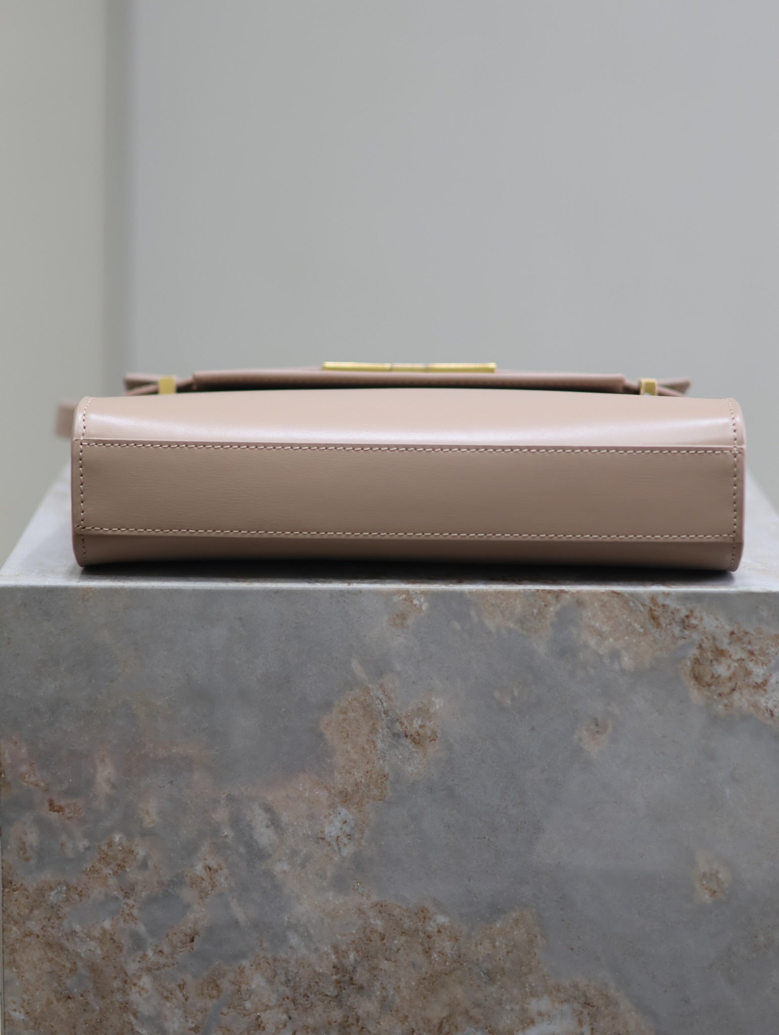 MANHATTAN MEDIUM 29 IN DARK BEIGE SMOOTH CALFSKIN GOLD BUCKLE