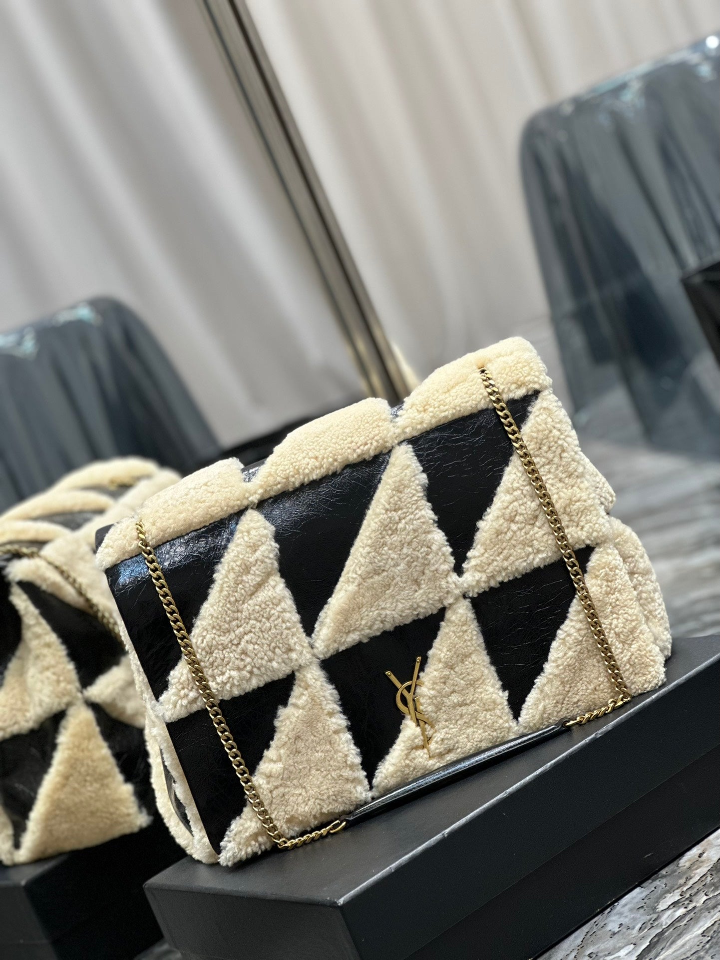 JAMIE BAG 25 IN BLACK CALFSKIN MIX BEIGE SHEARLING GOLD HARDWARE