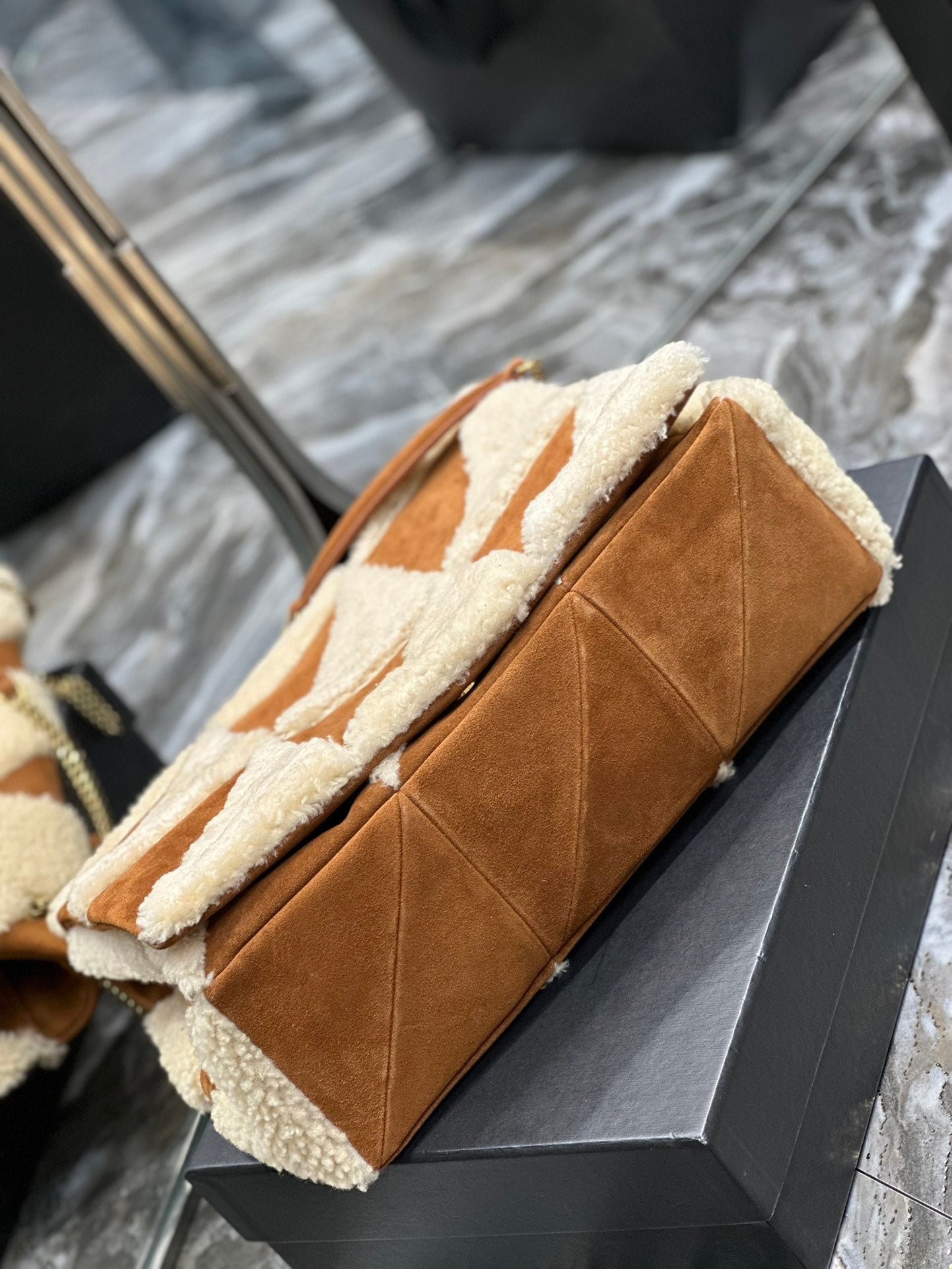 JAMIE BAG 25 IN BROWN SUEDE MIX BEIGE SHEARLING GOLD HARDWARE