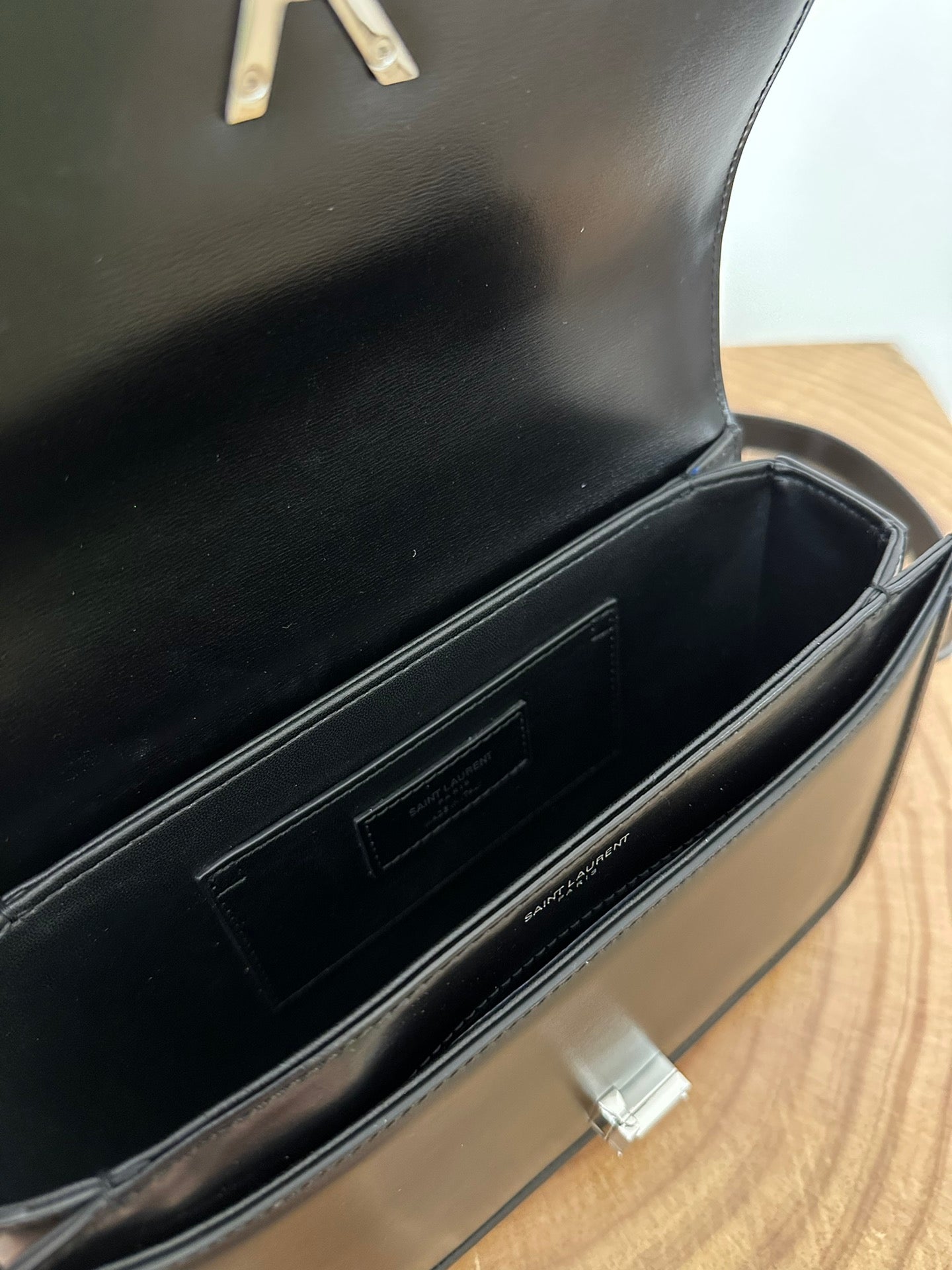 YSL Solferino Small Satchel Bag Black Silver Calfskin 339491