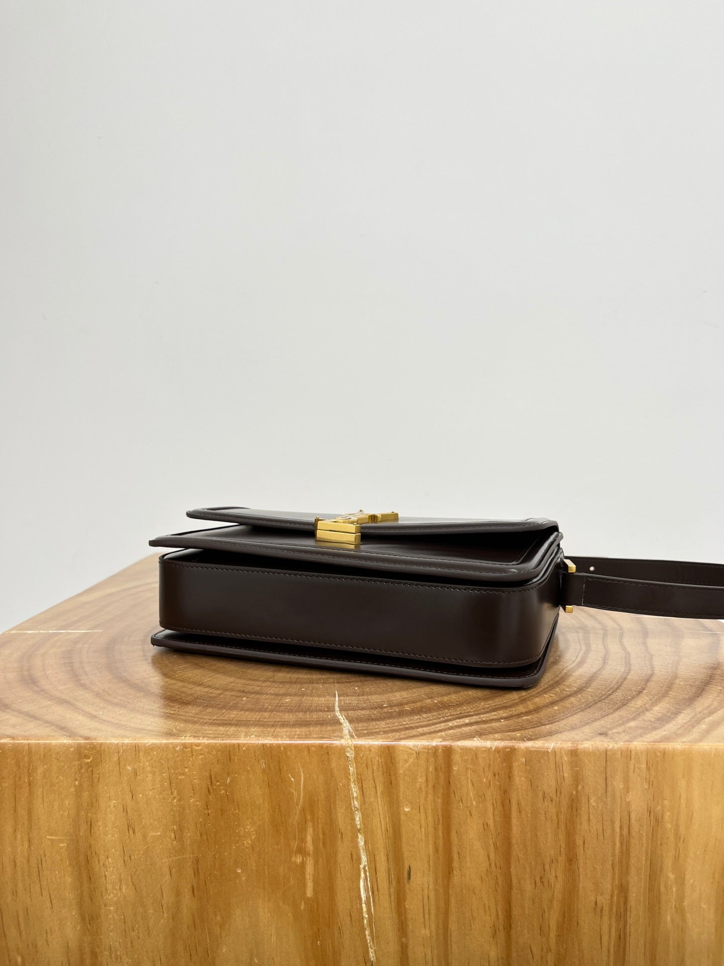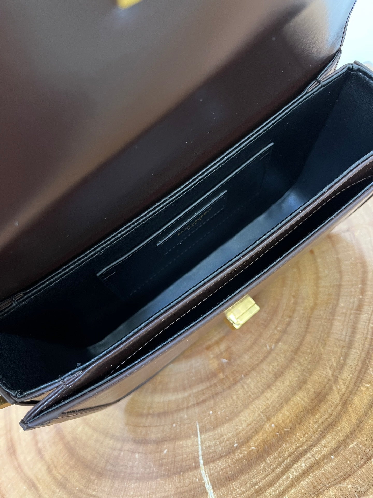 YSL Solferino Small Satchel Bag Brown Gold Calfskin 339437
