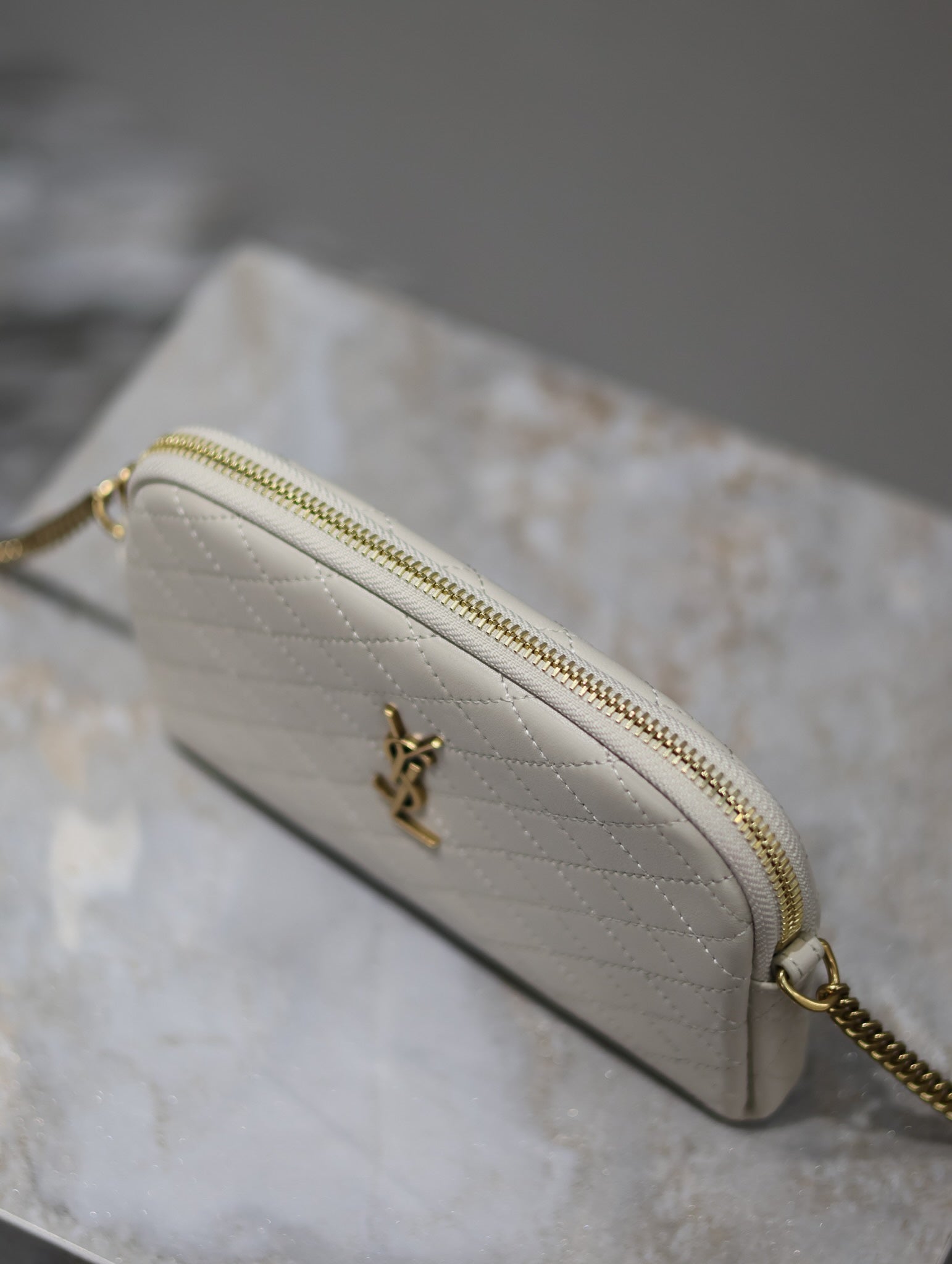 YSL Loulou Puffer Quilted Bag White Gold Lambskin 338844