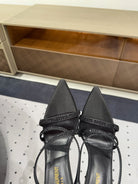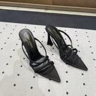 HIGH CRYSTAL STRAP SANDALS IN BLACK SILK