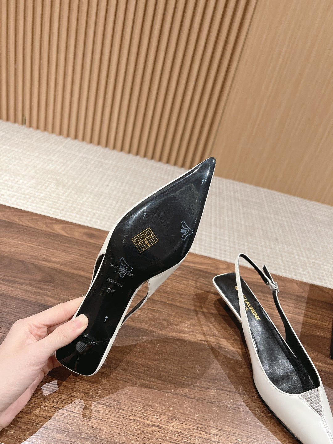 SL CHERISH CRYSTAL SLINGBACK WHITE CALFSKIN