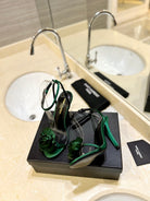 SL IVY FLORAL HEEL SANDALS DARK GREEN SATIN