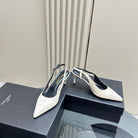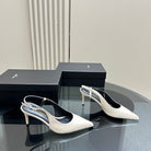 SL TRAPEZE HEEL SLINGBACK PUMP WHITE CALFSKIN