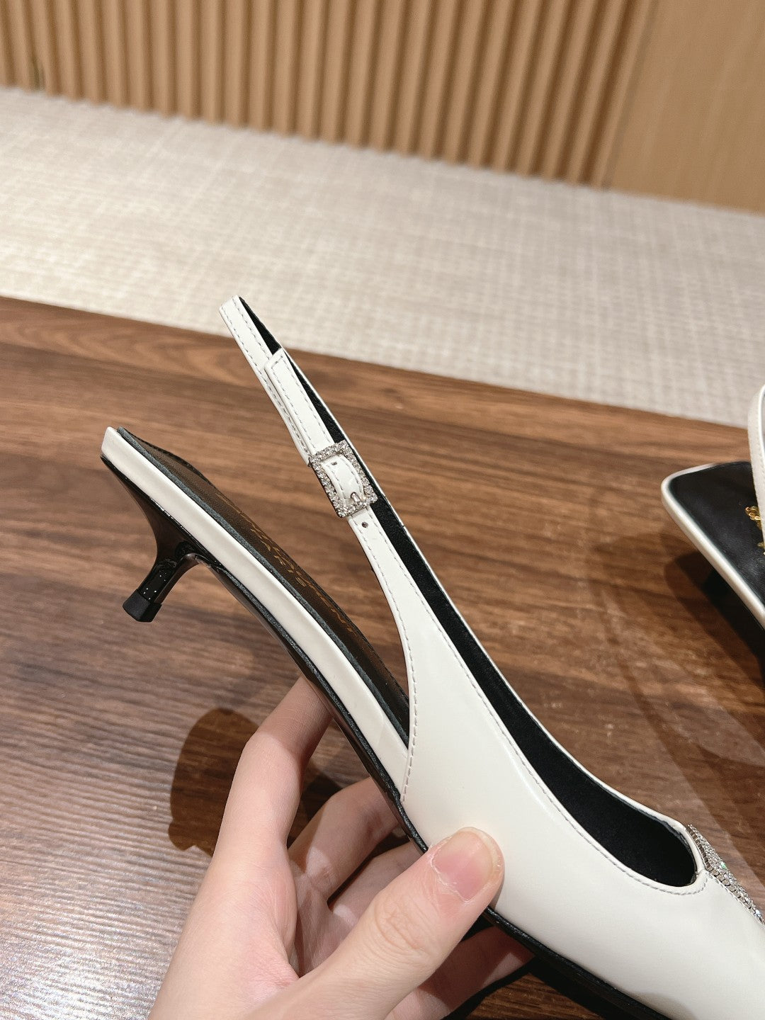 SL TRIANGLE HEELED SLINGBACKS WHITE CALFSKIN