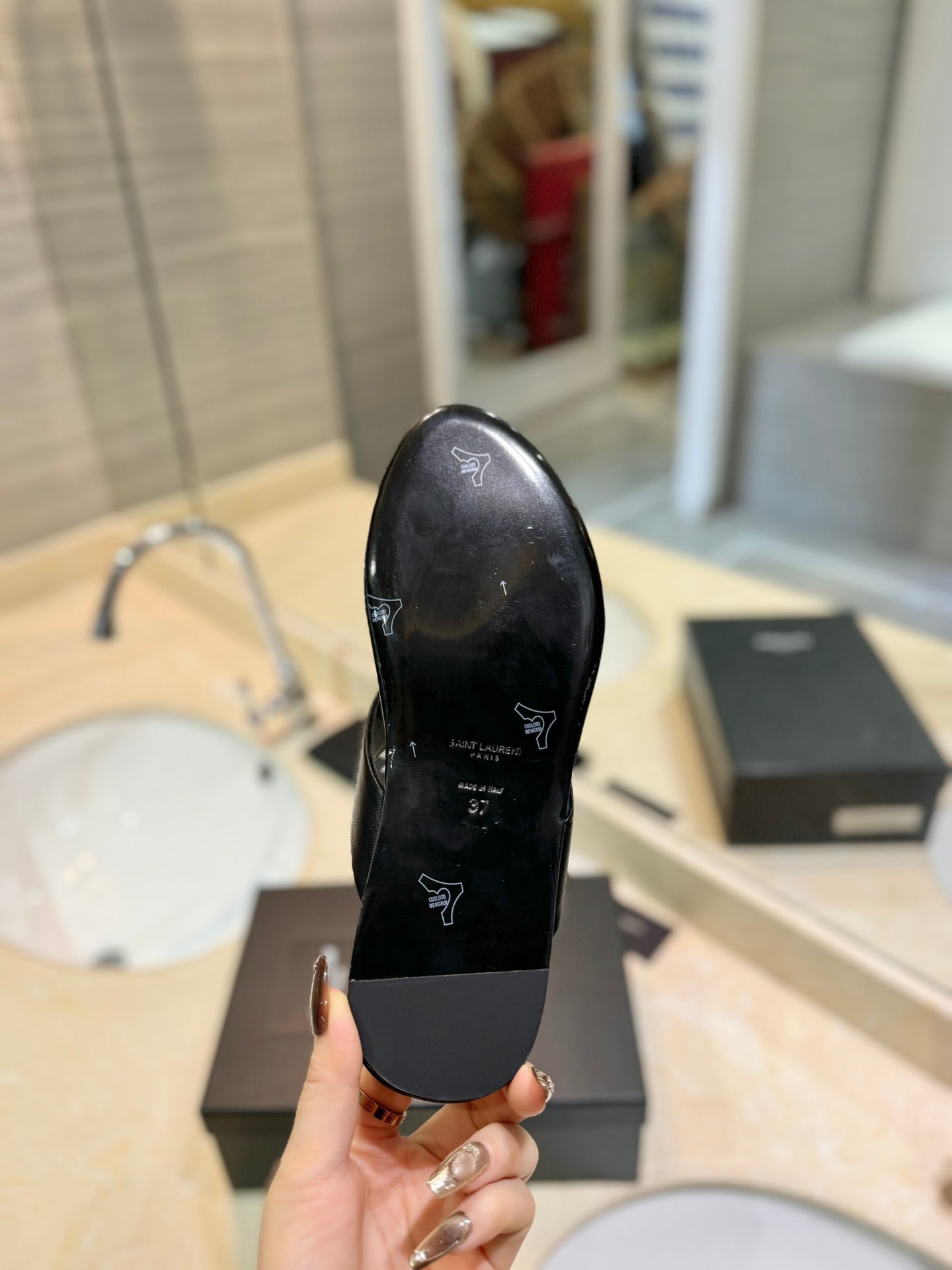 SL SQUARE BUCKLE SLINGBACK BLACK POLISHED CALFSKIN