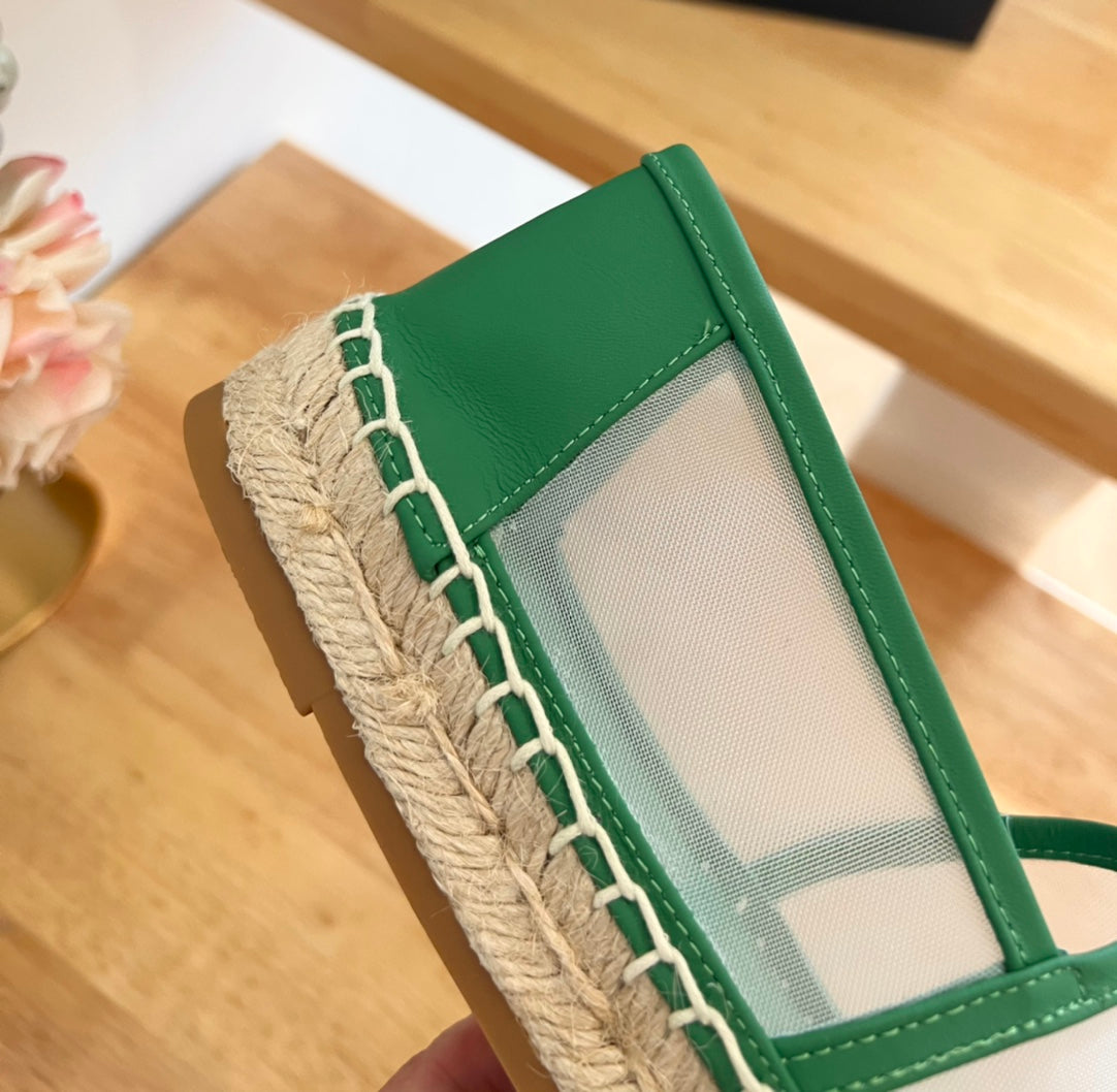 SL YVES LOGO SLIP ON DARK GREEN CALFSKIN AND MESH