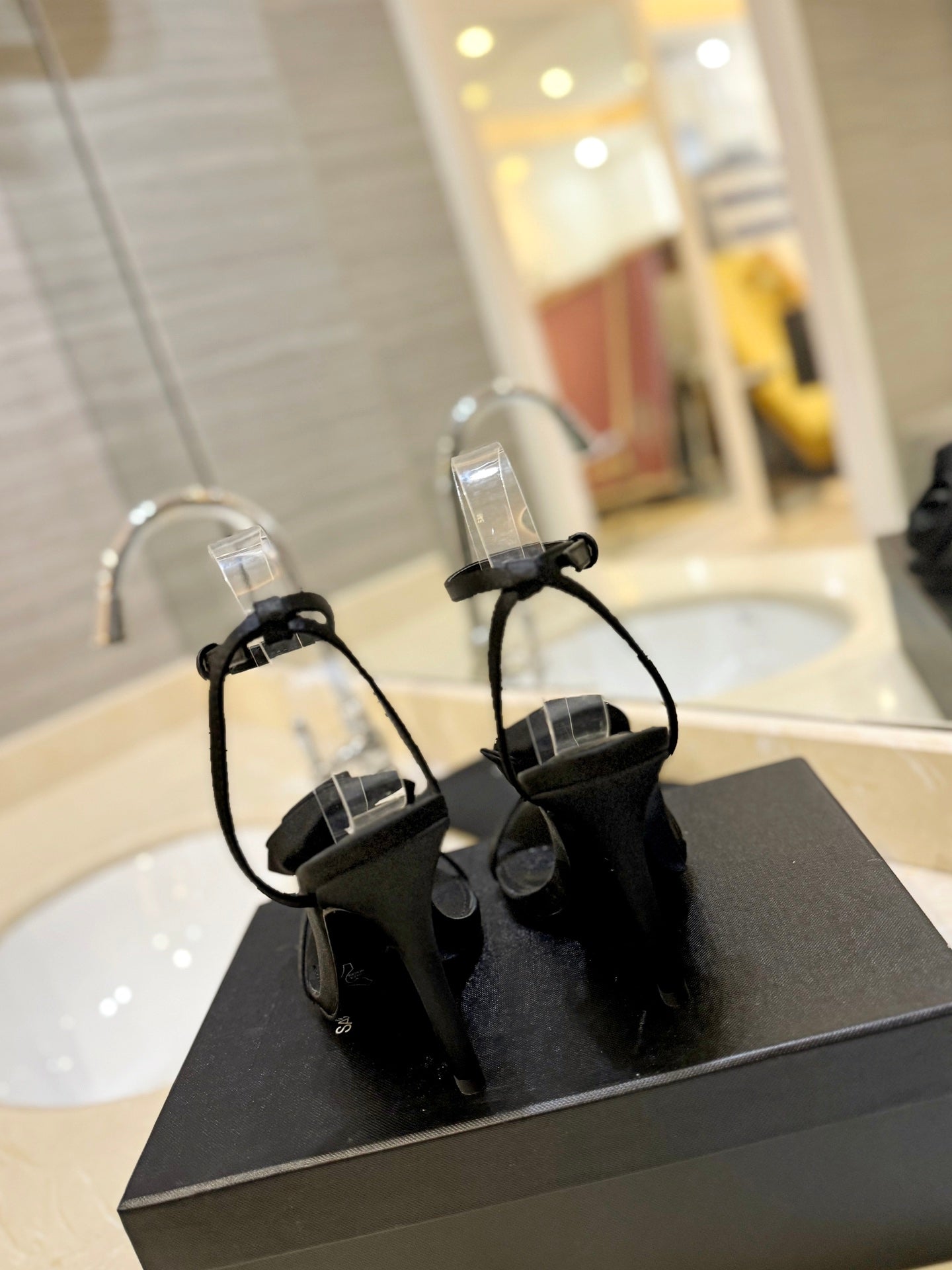 SL STRAP CRYSTAL HIGH SANDAL BLACK SATIN