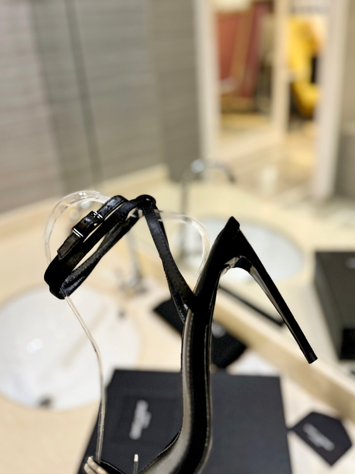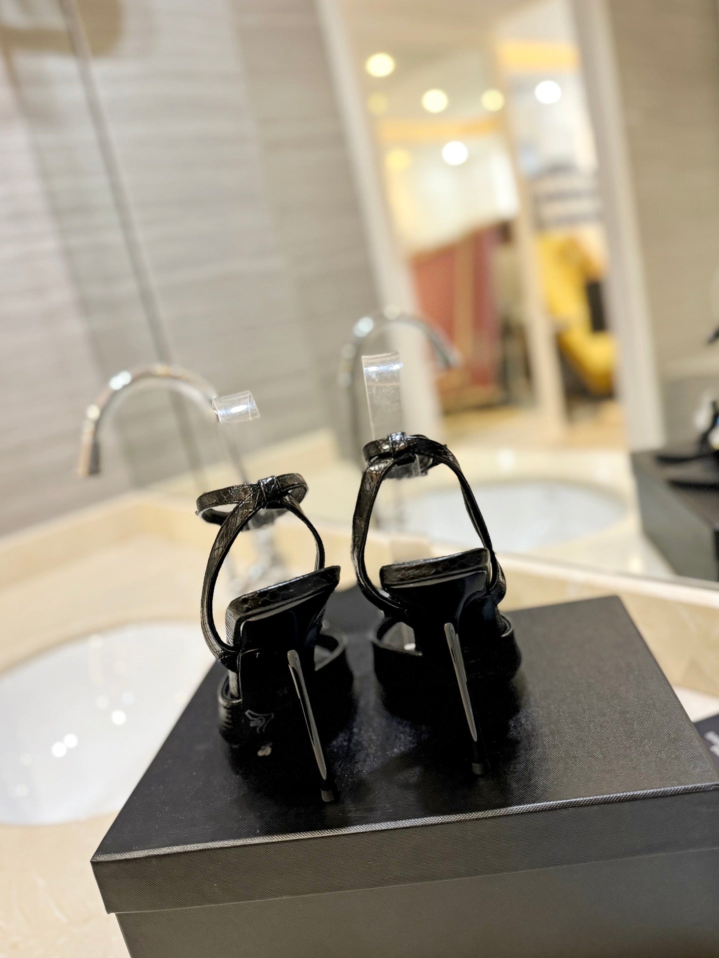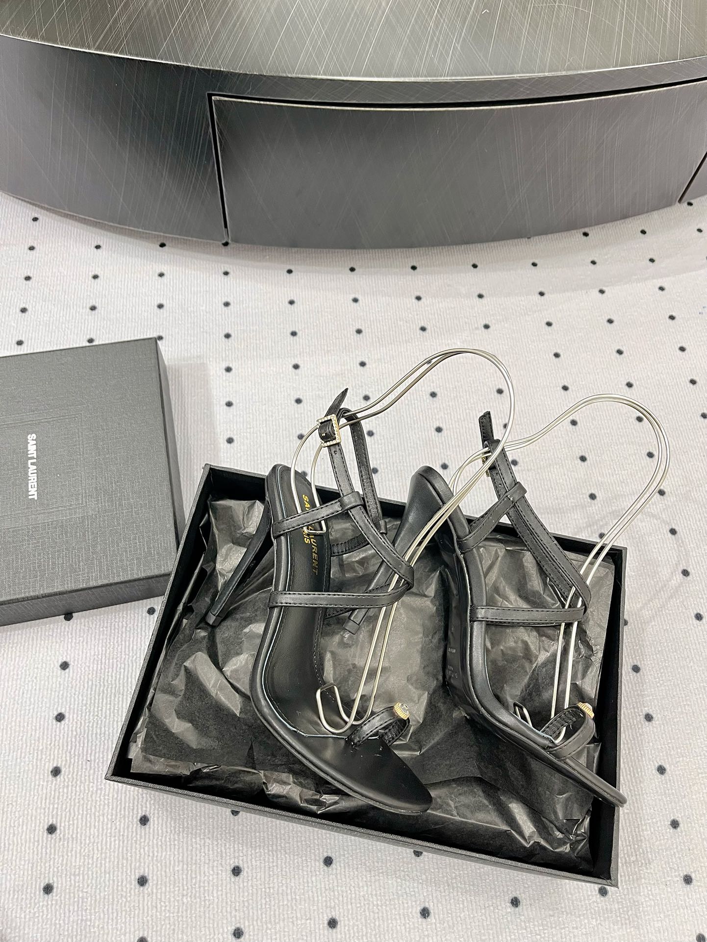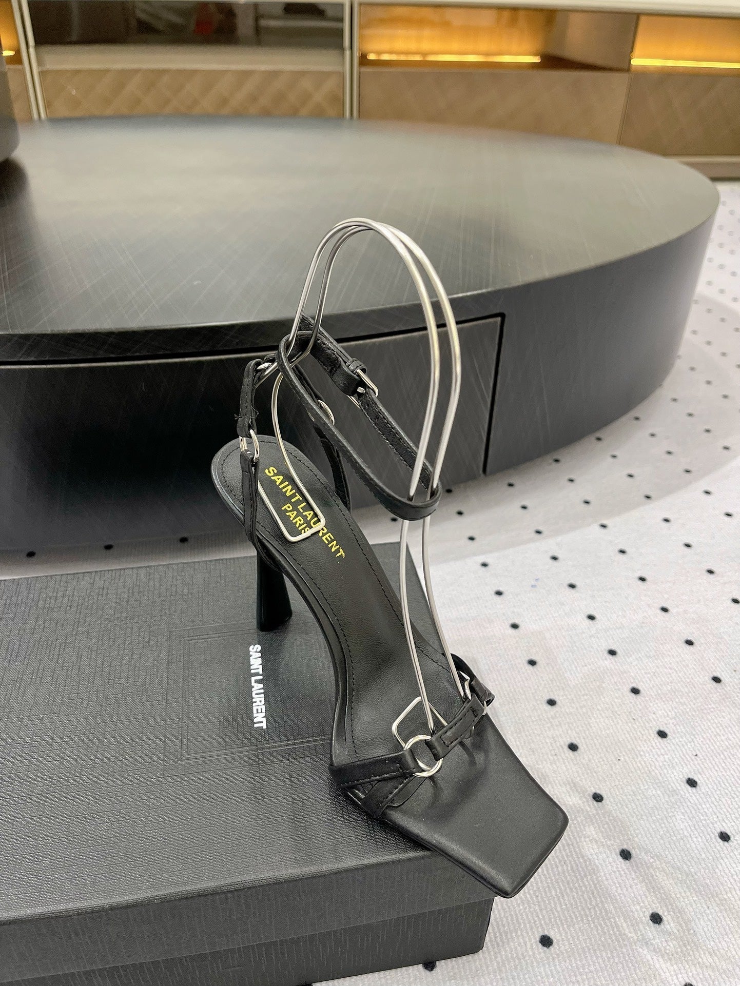 SL ANKLE-BUCKLE HEELED SANDALS BLACK CALFSKIN