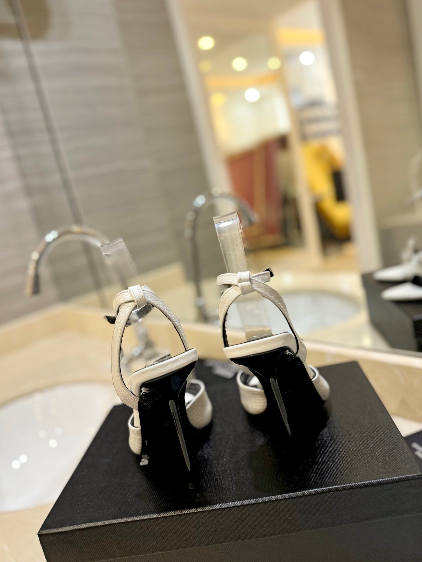 SL ANKLE-BUCKLE HEELED SANDALS WHITE CALFSKIN