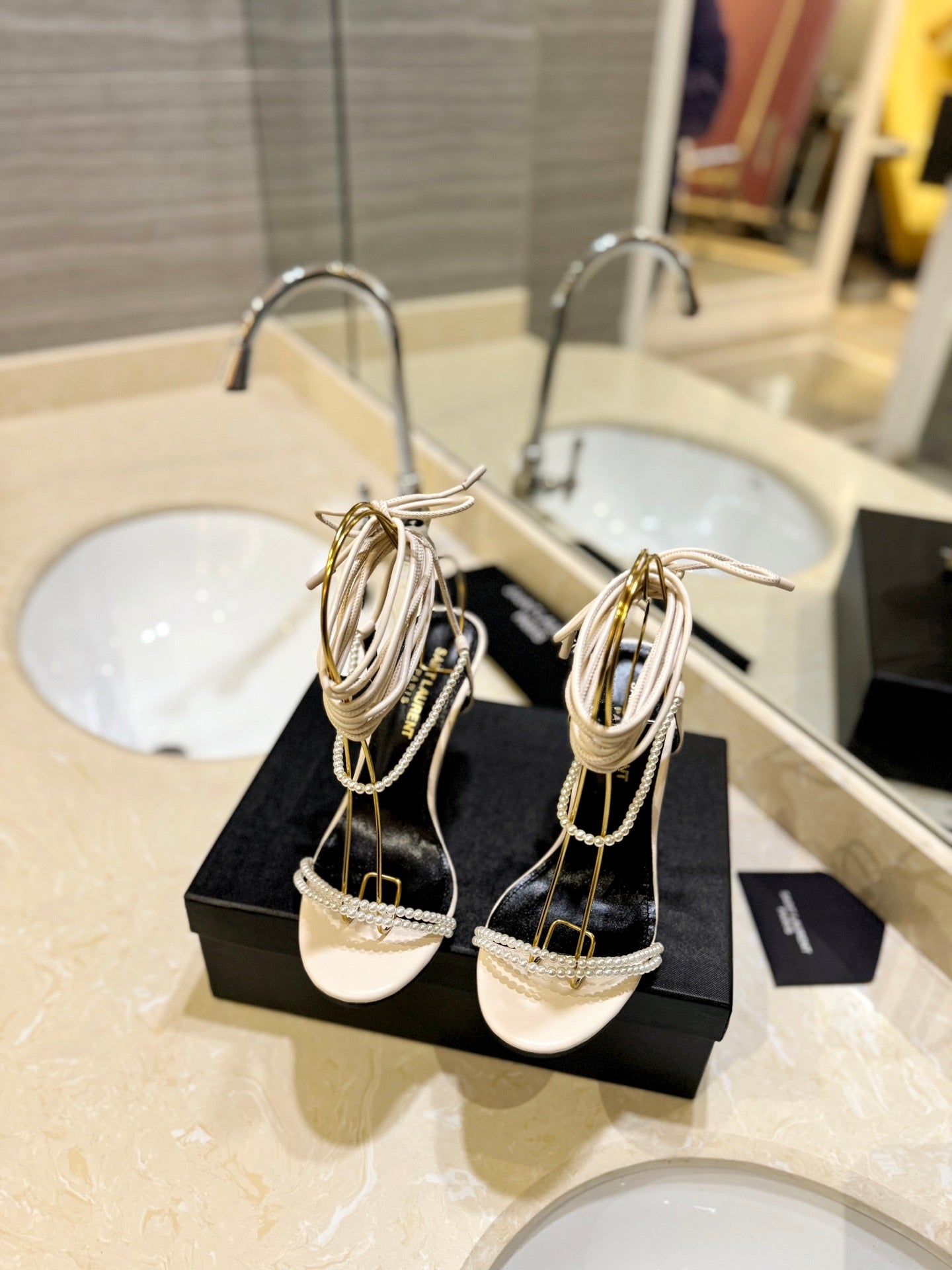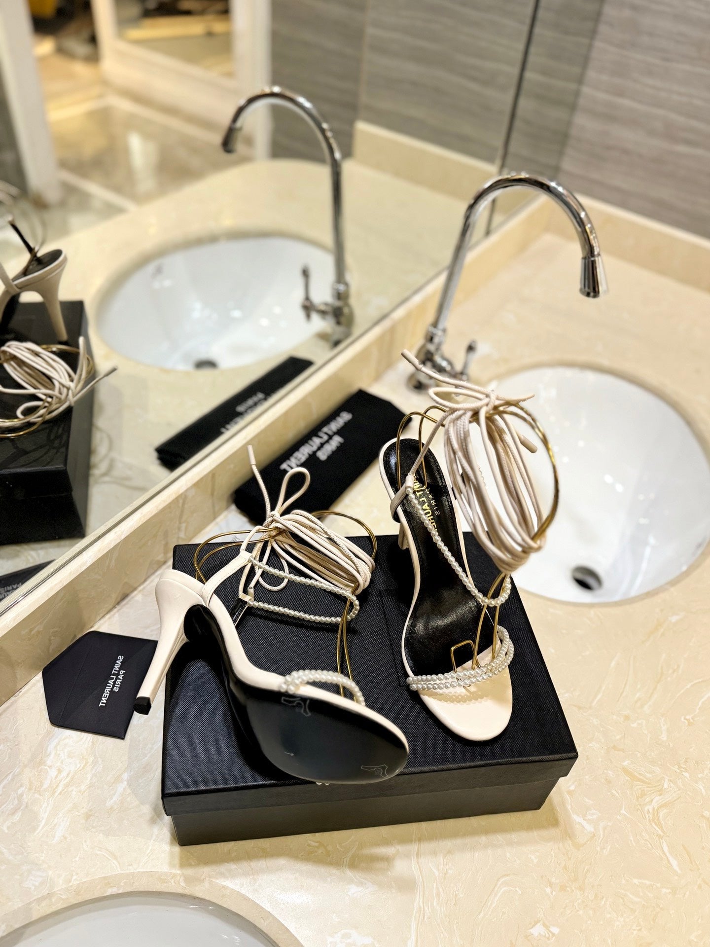 SL PEARL HIGH HEEL SANDALS CREAM CALFSKIN